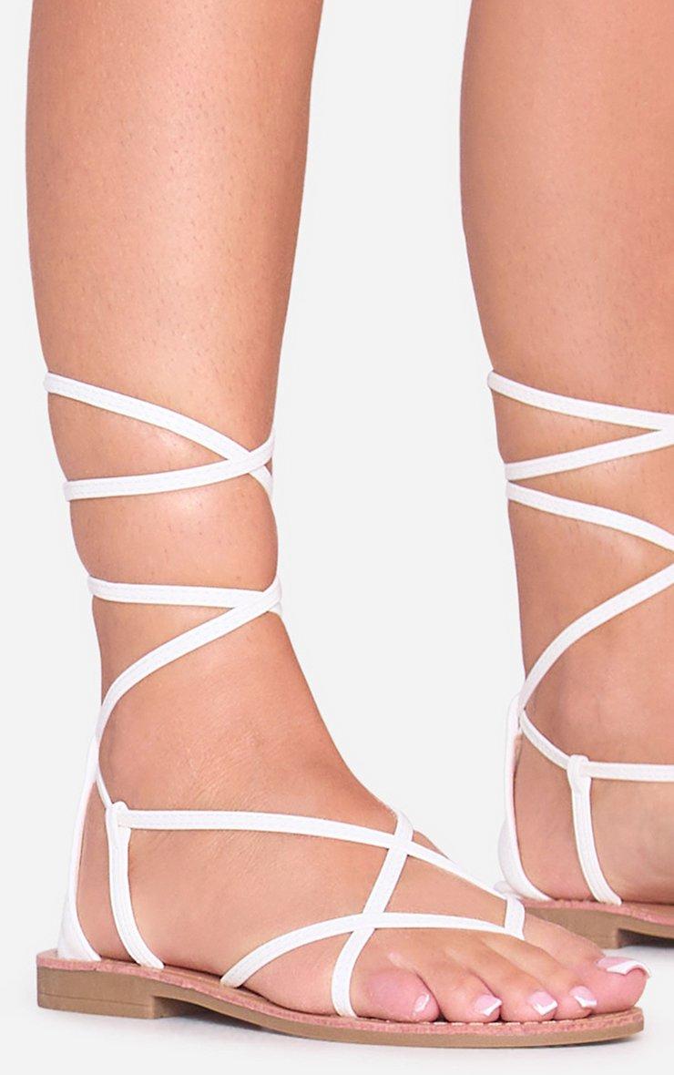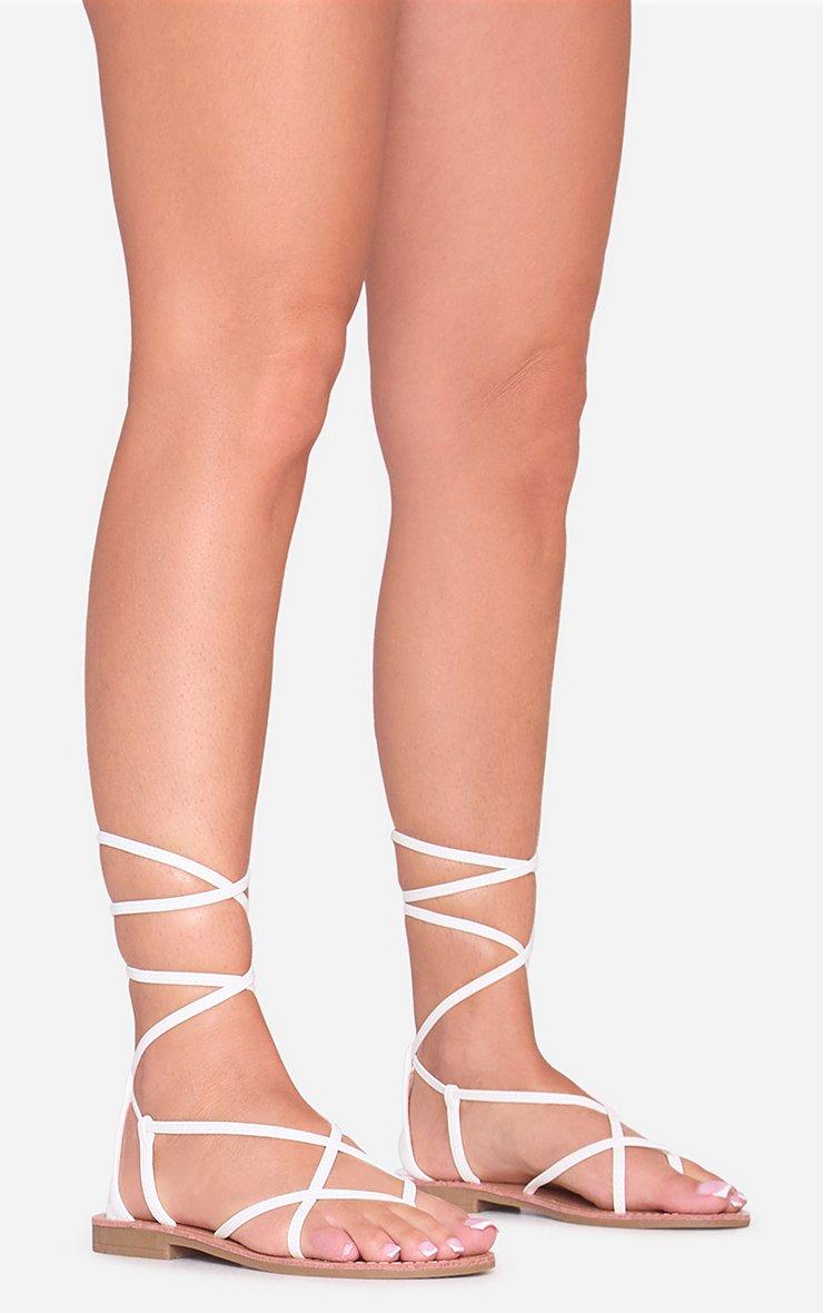 Marlee Lace Up Strappy Flat Sandal In White Faux Leather