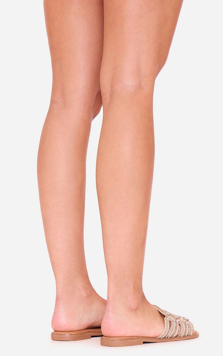York Diamante Cut Out Strappy Flat Slider Sandal In Gold Faux Leather