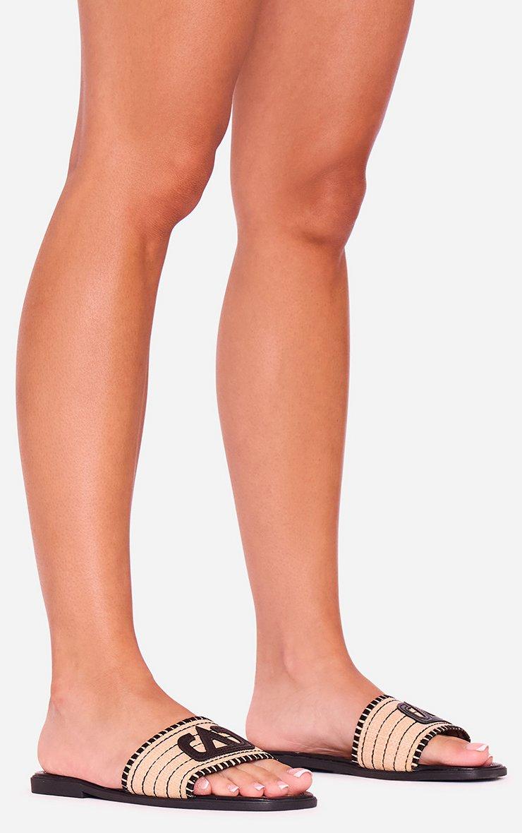 Pool days or park strolls, these sliders are a go-to. Featuring a black woven material with logo detailing and a flat sole, they’re the effortless staple your laid-back looks need, doll.