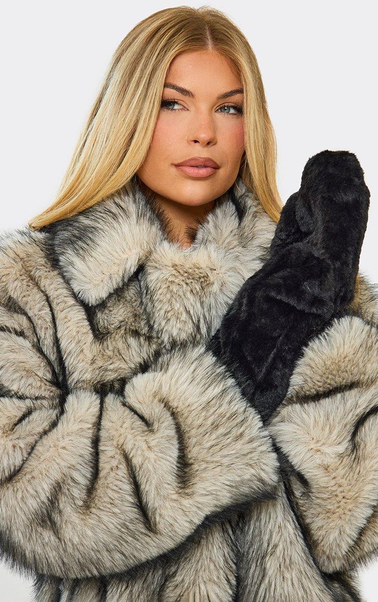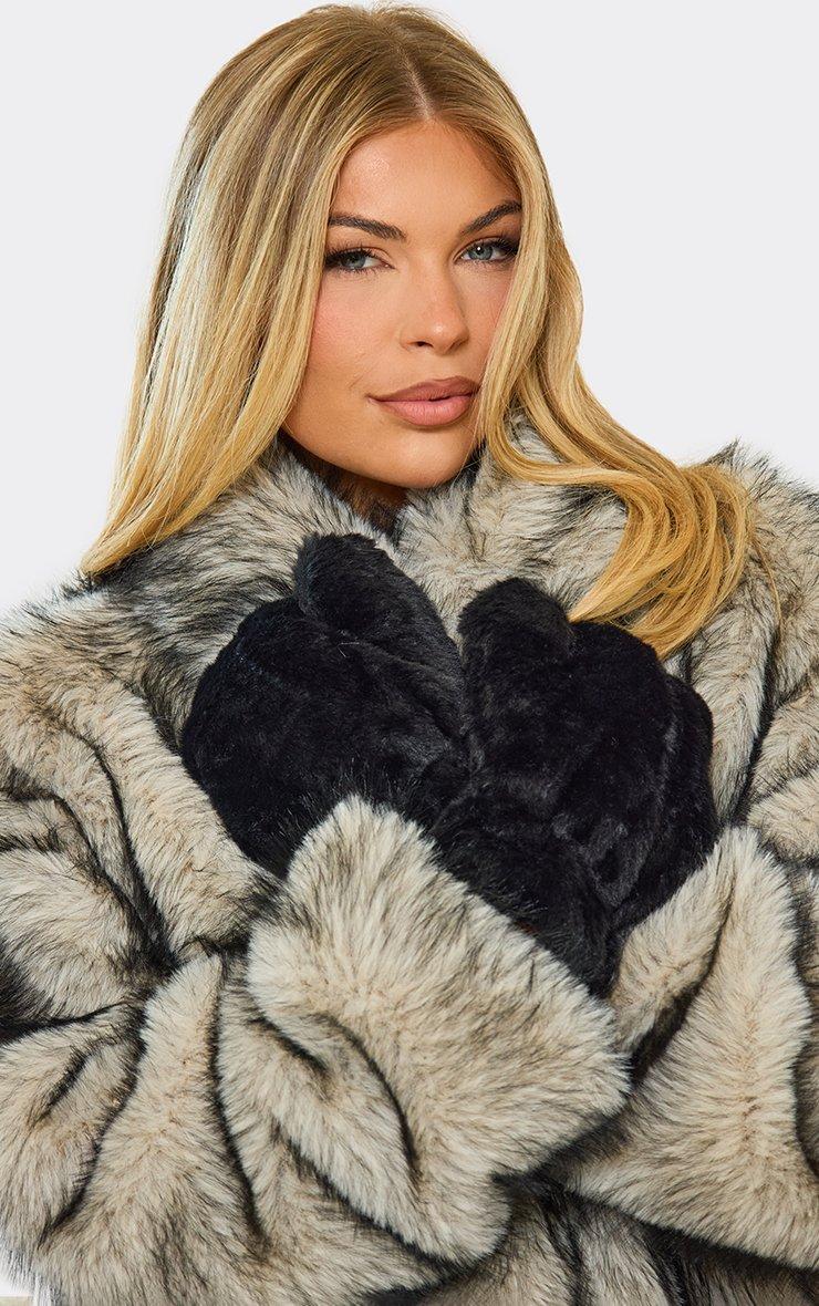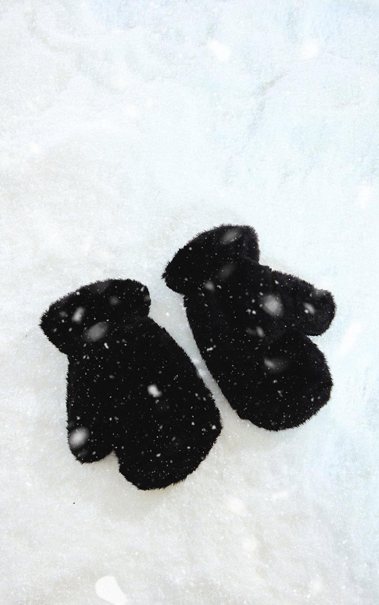 Stay snug and stylish with these black faux fur mitten gloves. Crafted from a soft, plush material for ultimate warmth and comfort — perfect for adding a luxe touch to your cold-weather look.