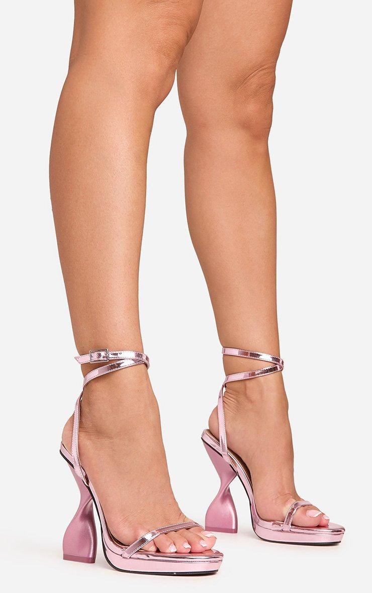 Vida-Loca Open Toe Platform Twisted Statement Heel In Light Pink Metallic Faux Leather