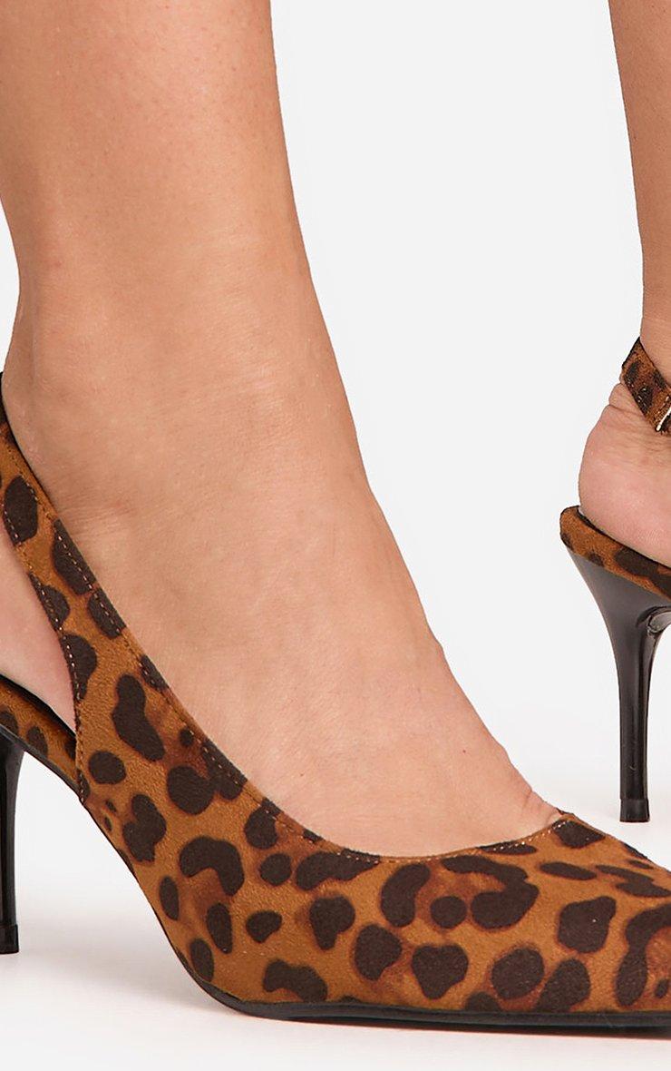 Girl, take a walk on the wild side with these statement heels doll. Featuring a leopard print faux suede material, with a pointed toe and a slingback court heel design.