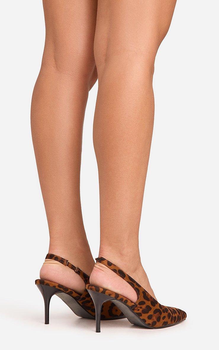 Seymore Pointed Toe Slingback Court Heel In Leopard Print Faux Suede