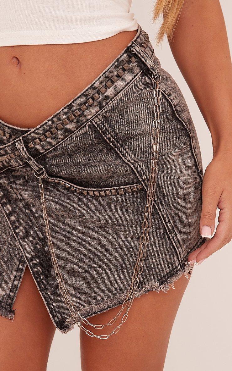 Asymmetric Wrap Waist Chain Detail Mini Skirt In Black Acid Wash Denim