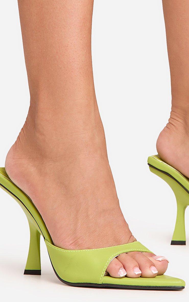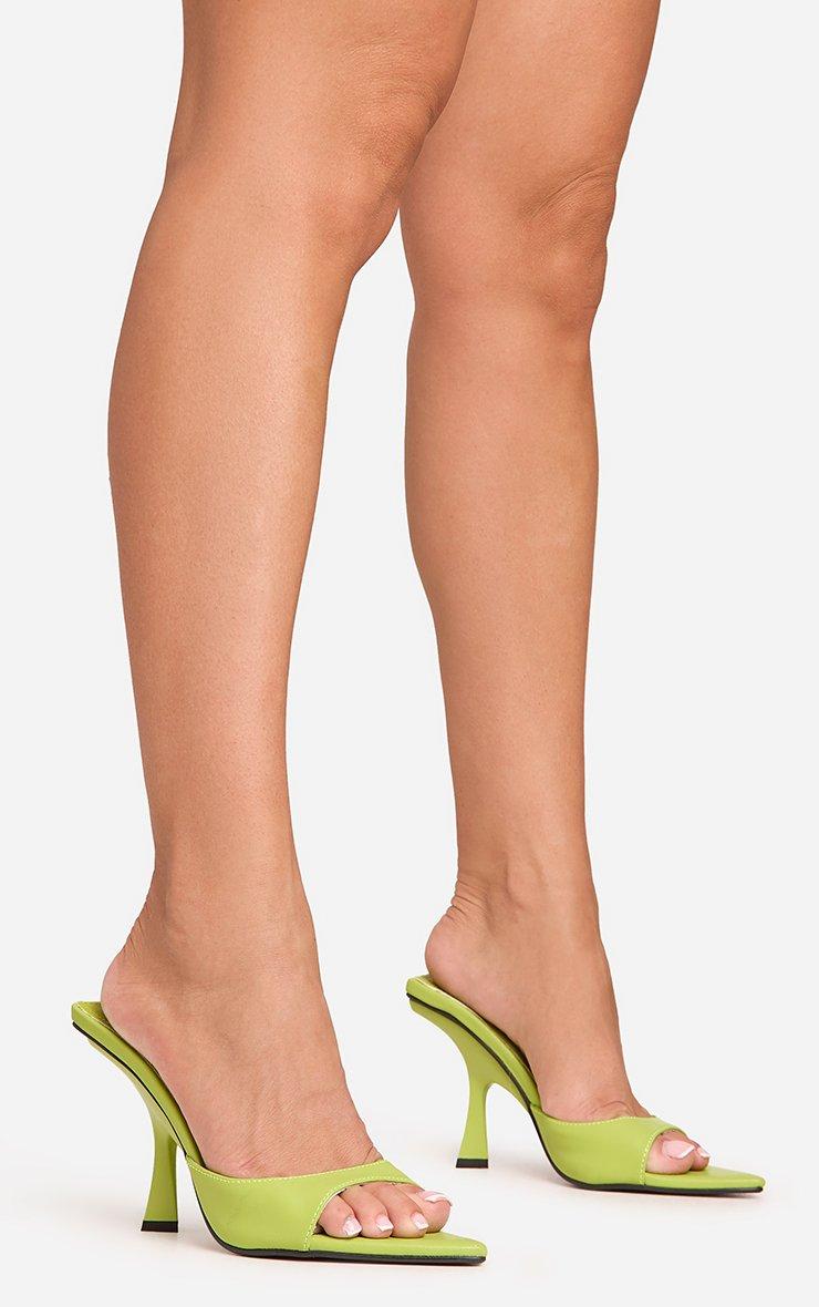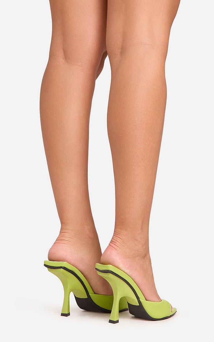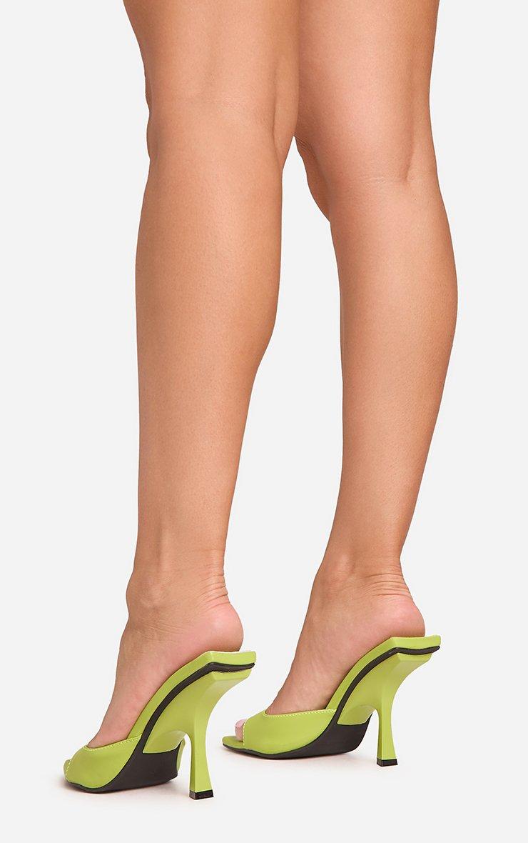 Ready to turn heads on a night out, doll? Featuring vibrant green faux leather material with chic pointed peep toe detailing, these flared heel mules are perfect for adding a pop of colour to any outfit. Step out and slay!