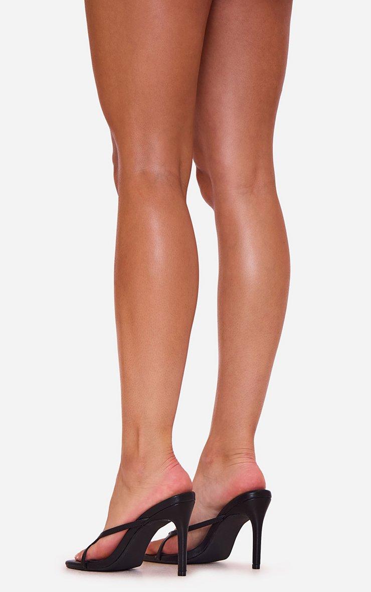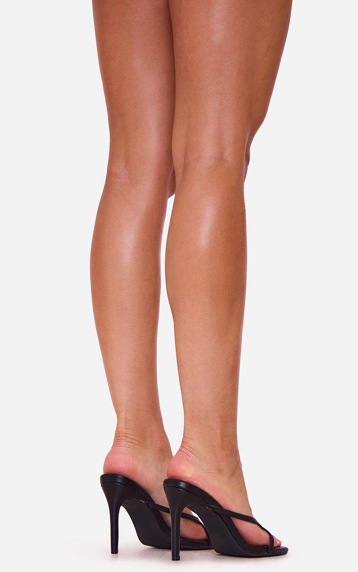 Attend Strappy Detail Square Toe Stiletto Heel Mule In Black Faux Leather