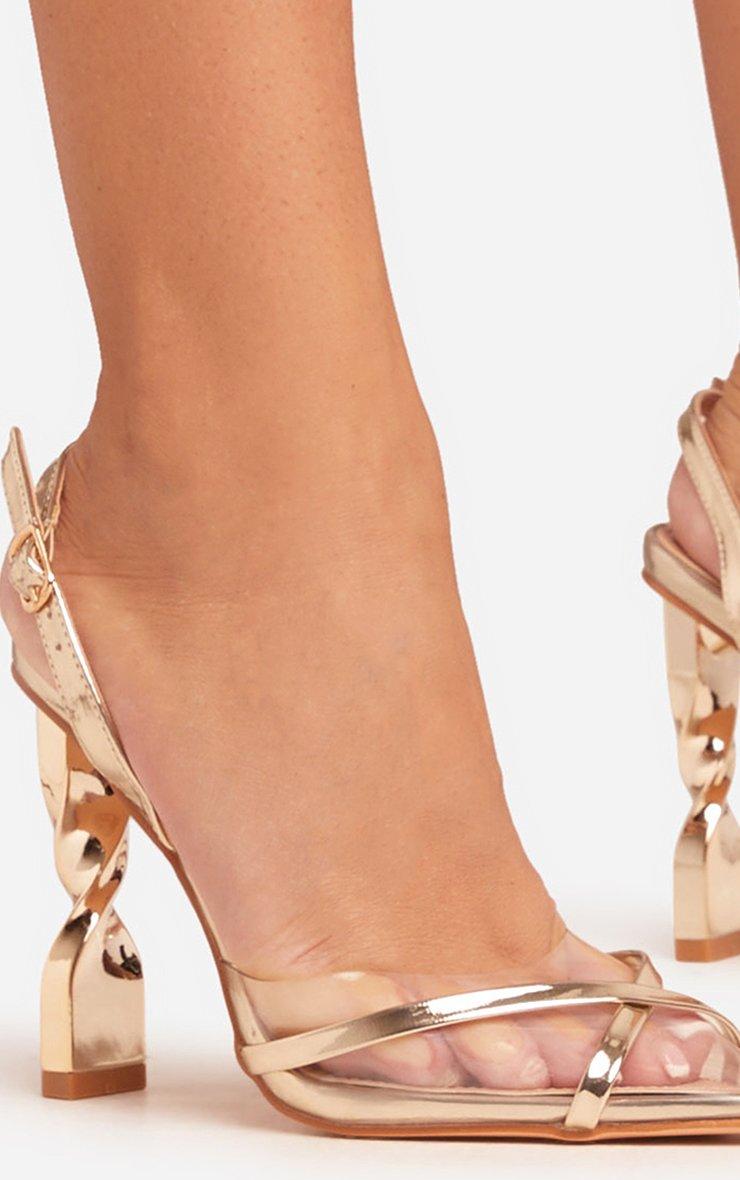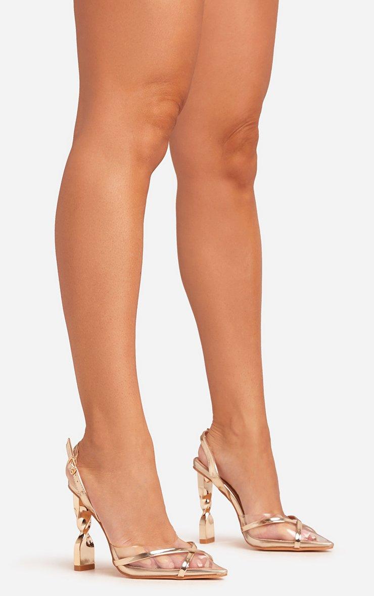 Mateo Pointed Perspex Toe Slingback Twisted Court Heel In Gold Faux Leather