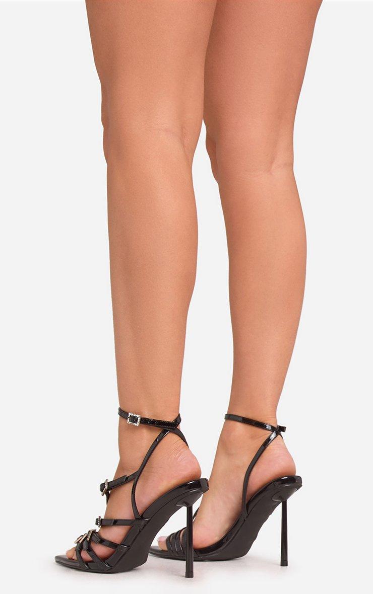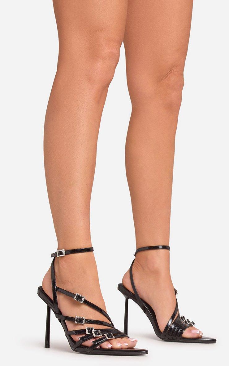 Coven Multi Diamante Buckle Strap Detail Pointed Toe Stiletto Heel In Black Patent
