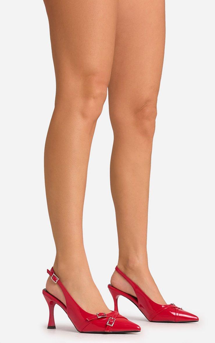Qirin Buckle Detail Pointed Toe Slingback Court Heel In Red Faux Leather