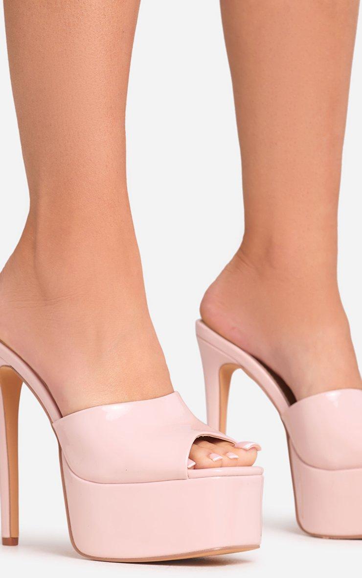 Step up your game, babe! Featuring a pink patent material, peep toe design, and extreme platform stiletto heel, these mules are made to elevate your look with bold, head-turning flair.