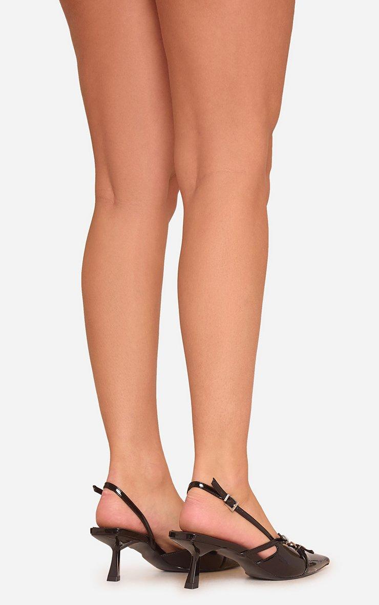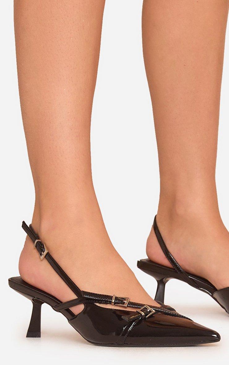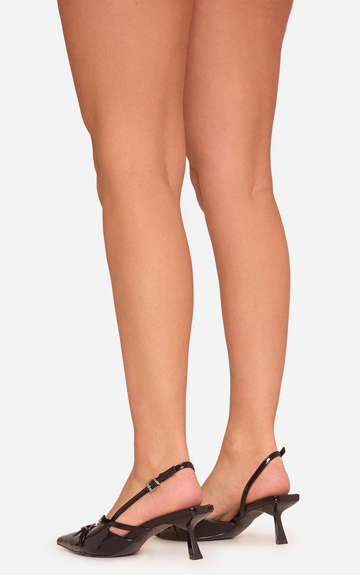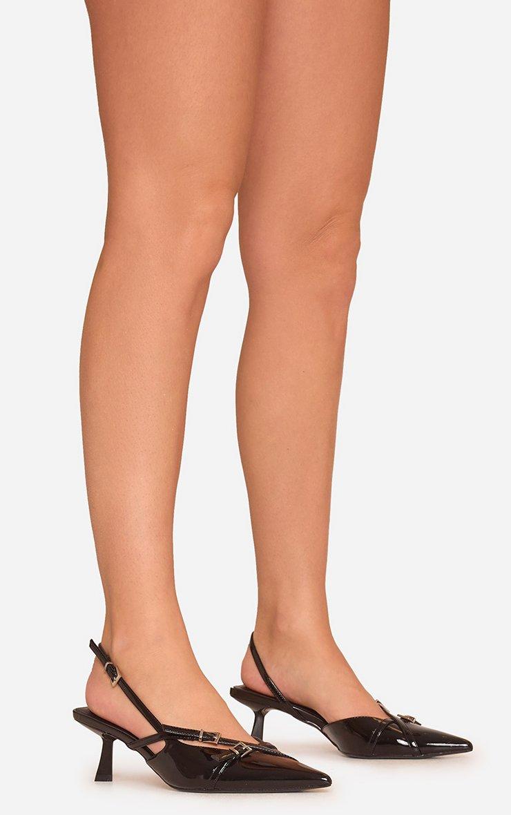 Noah Buckle Detail Pointed Toe Slingback Court Heel In Black Patent