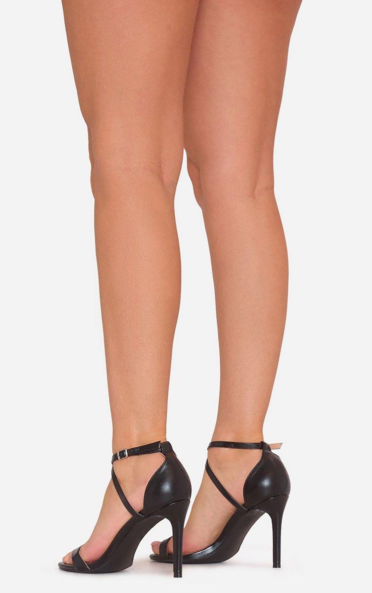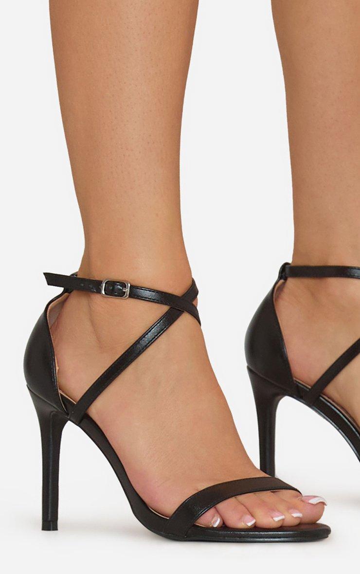 Earle Cross Strap Stiletto Heel In Black Faux Leather