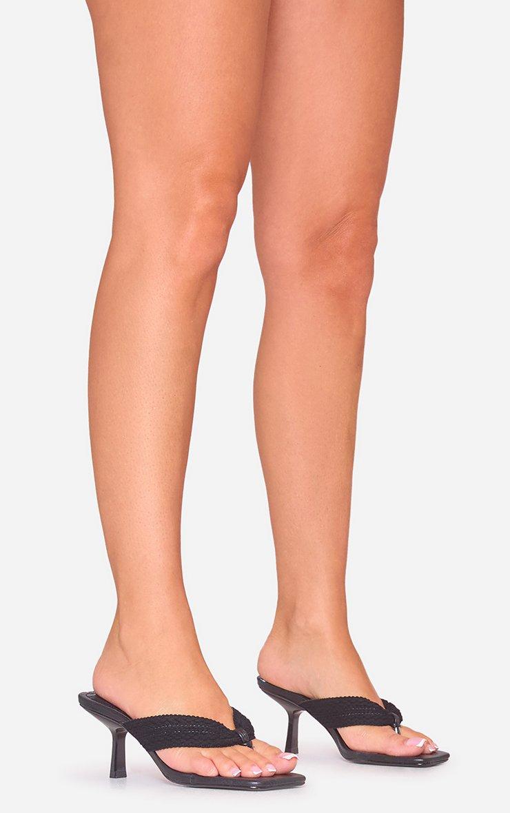 Hudson Textured Thong Strap Square Toe Heel Mule In Black Patent