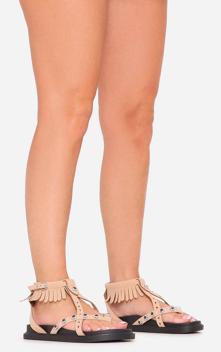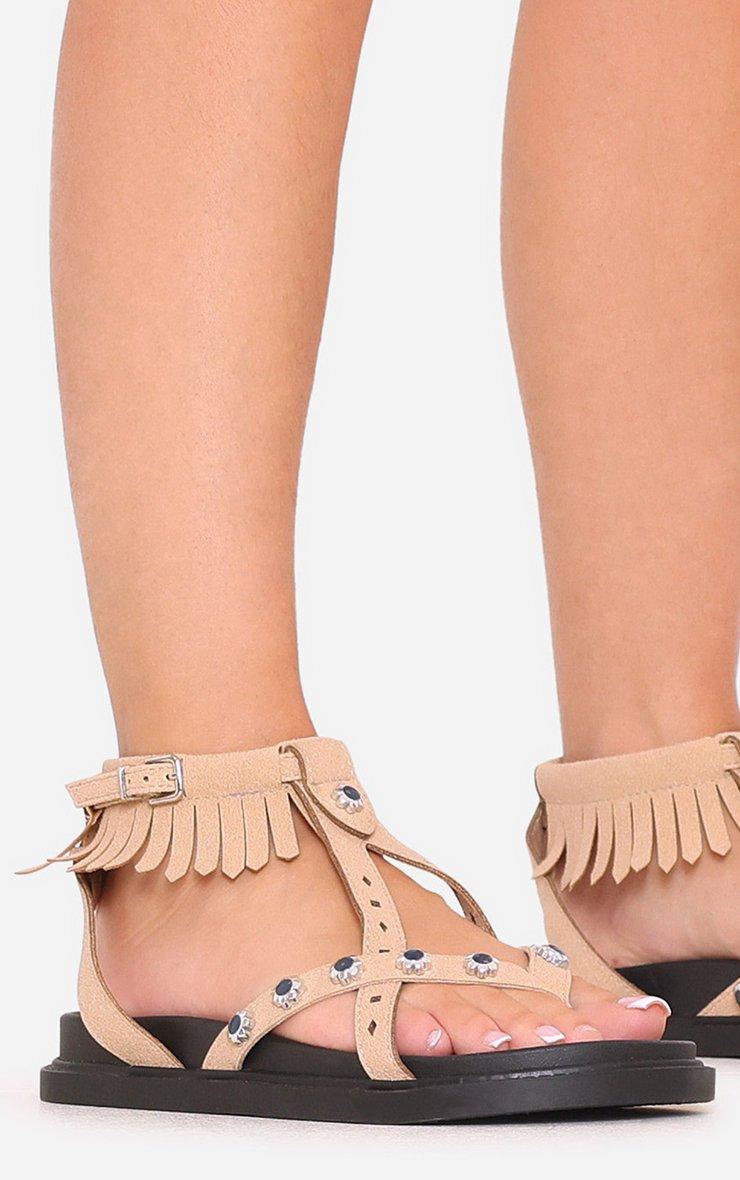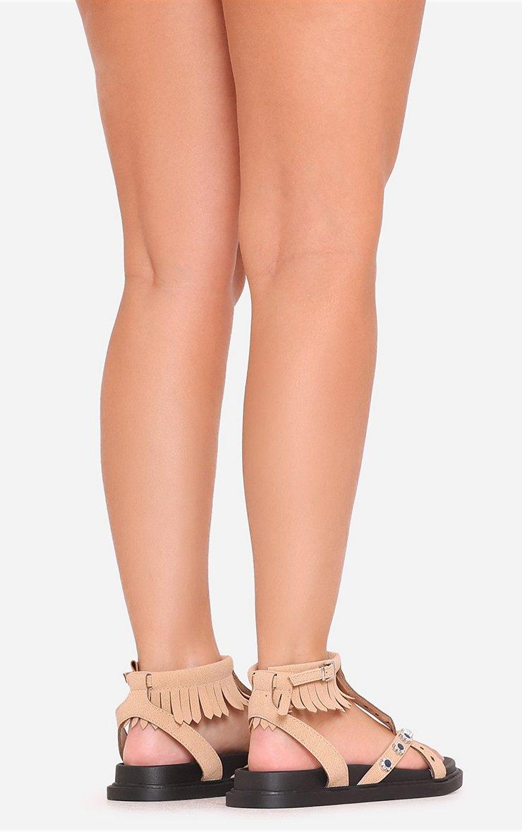 Nataline Fringe Detail Chunky Sole Sandal In Beige Faux Suede