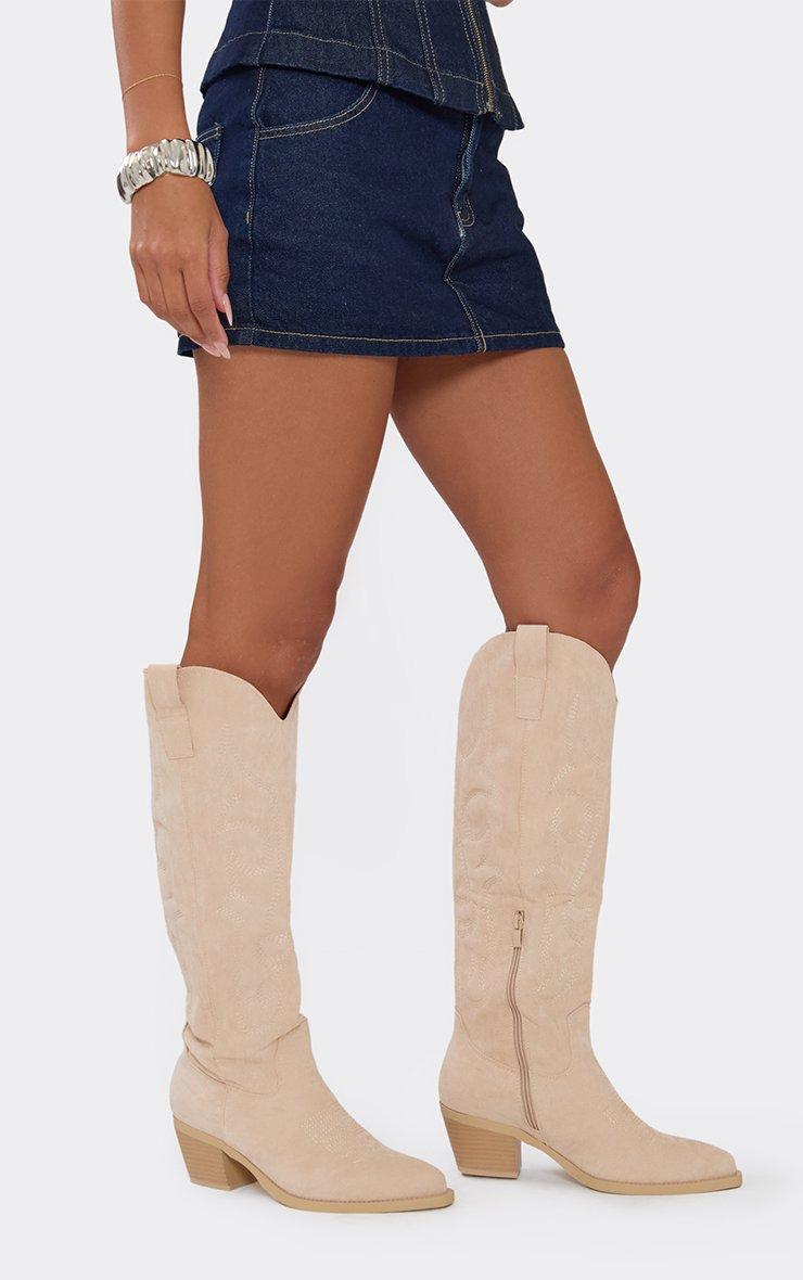 These Carter western boots are a total mood, doll. Featuring beige faux suede with intricate embroidered detailing and a sharp knee-high fit, they bring a fresh, high-octane edge to your rotation. Style them with a denim mini dress and a tan suede bag for a modern-festival aesthetic.