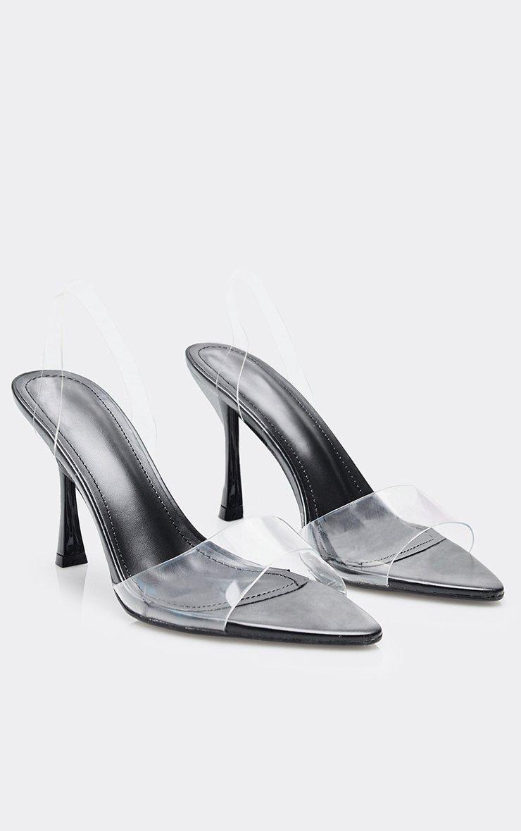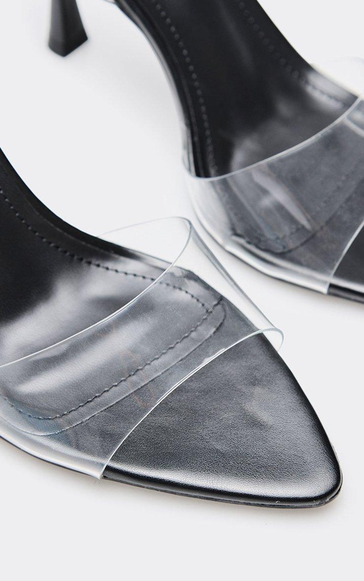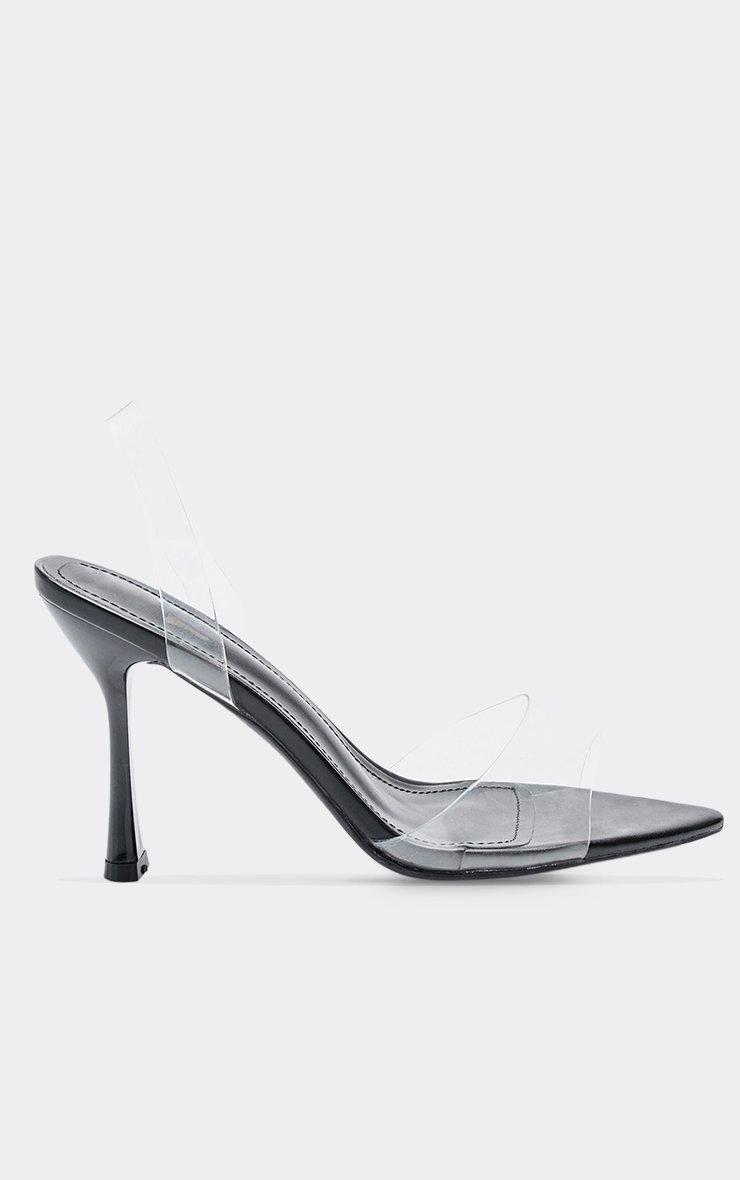 Step out and serve main character energy at your next big event. Featuring black faux leather material with clear perspex strap detailing, these pointed peep toe heels are the ultimate it-girl staple.