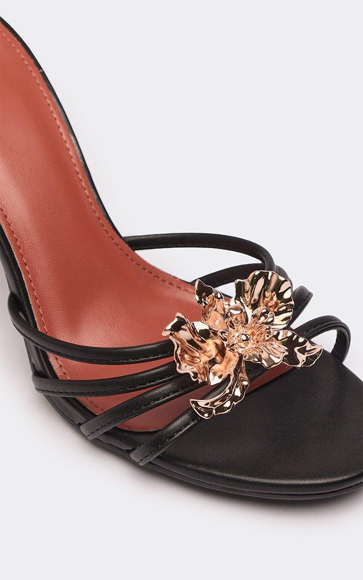 Get ready to own the night in these absolute must-haves. Featuring black faux leather material with flower and strap detailing, these heeled mules are a total vibe. Style with a lace mini dress and a clutch for a look that is effortlessly cool.
