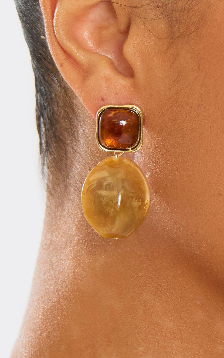 Double Stone Detail Drop Stud Earring In Brown