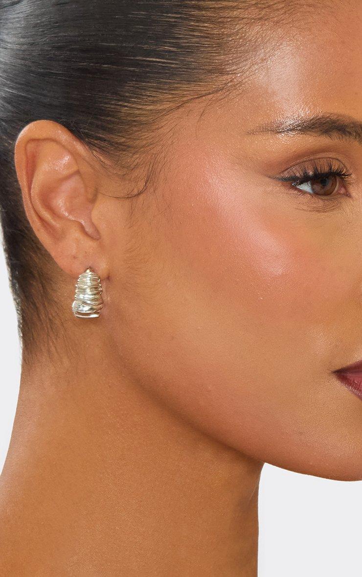 Textured Detail Small Hoop Earrings In Silver