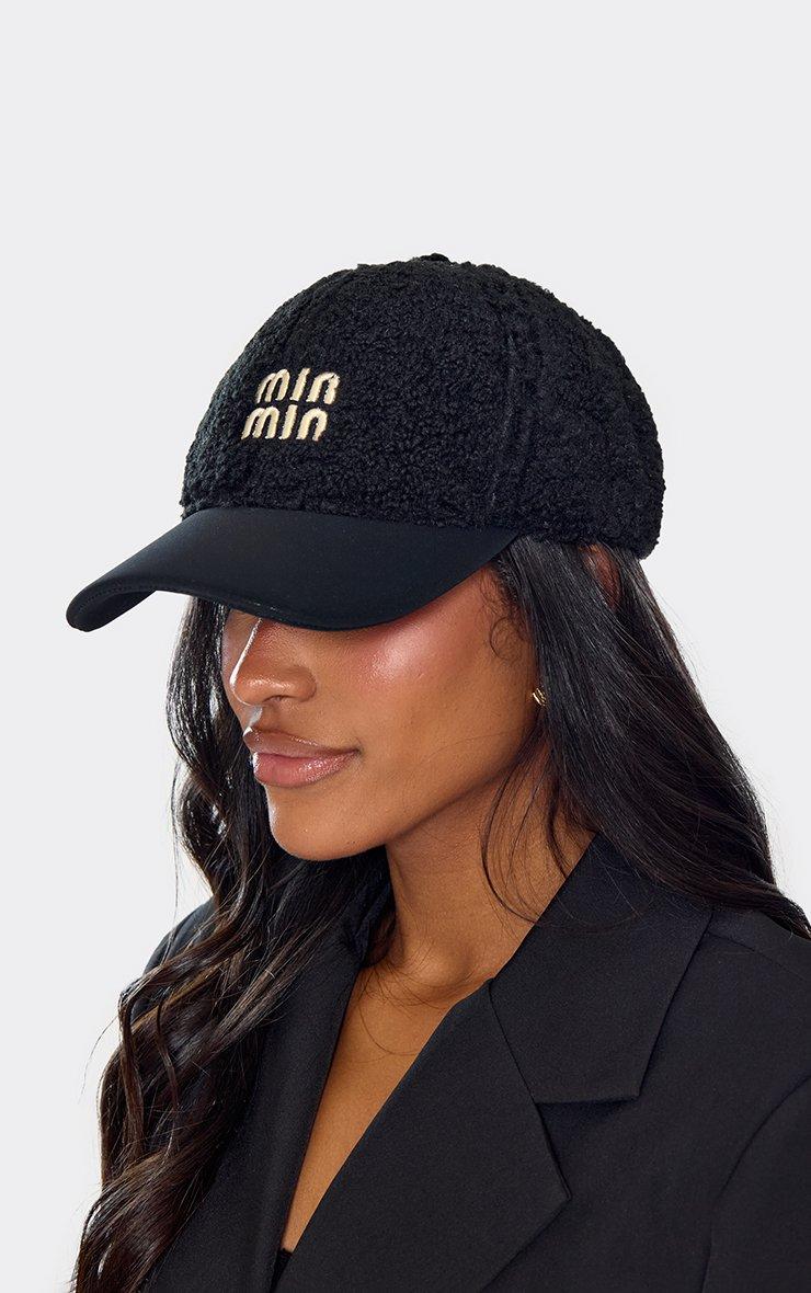 Top off your look, doll! Featuring black faux shearling with logo detailing, this baseball cap serves chic, bold vibes perfect for off-duty days.