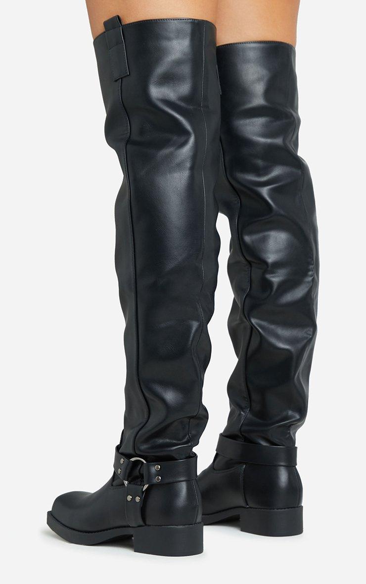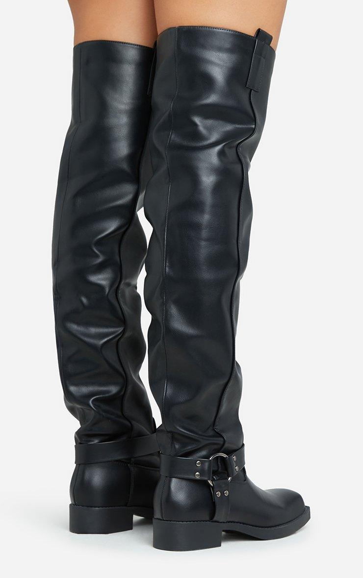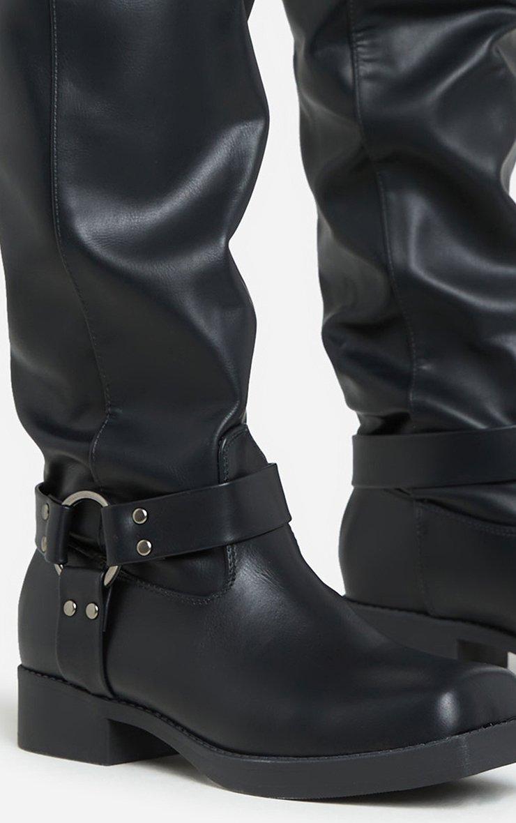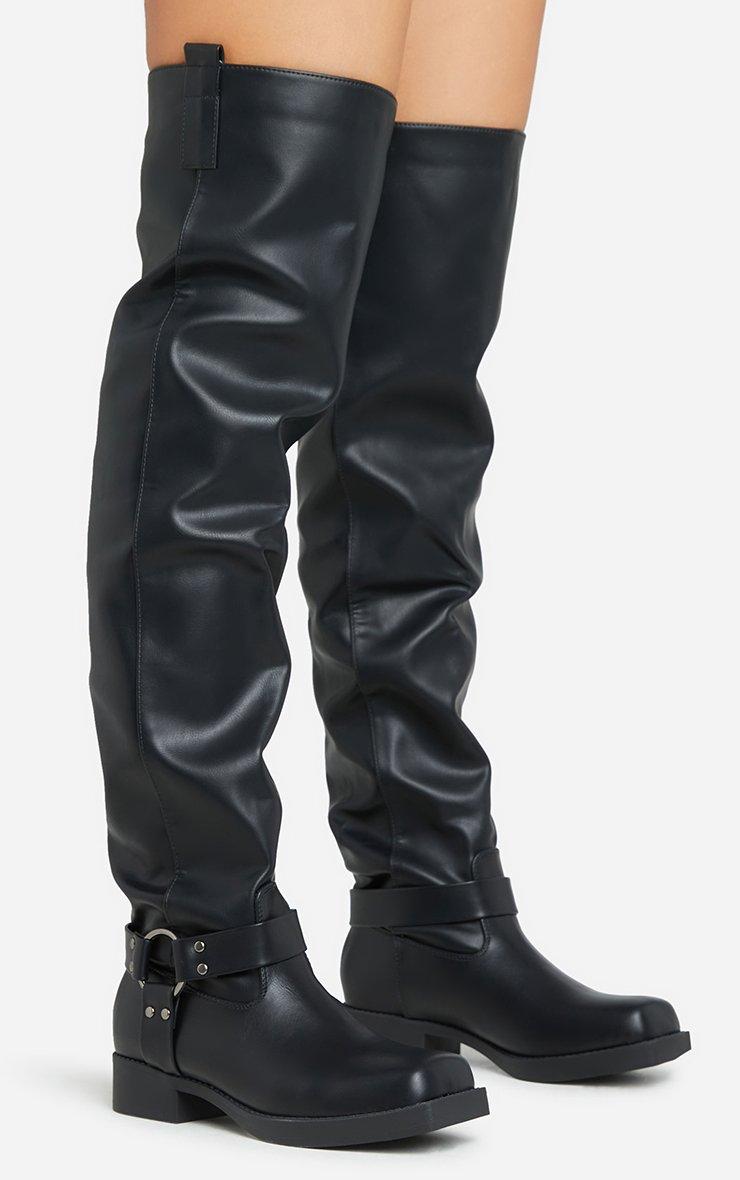 Free-Rider Ring Detail Square Toe Over The Knee Thigh High Boot In Black Faux Leather