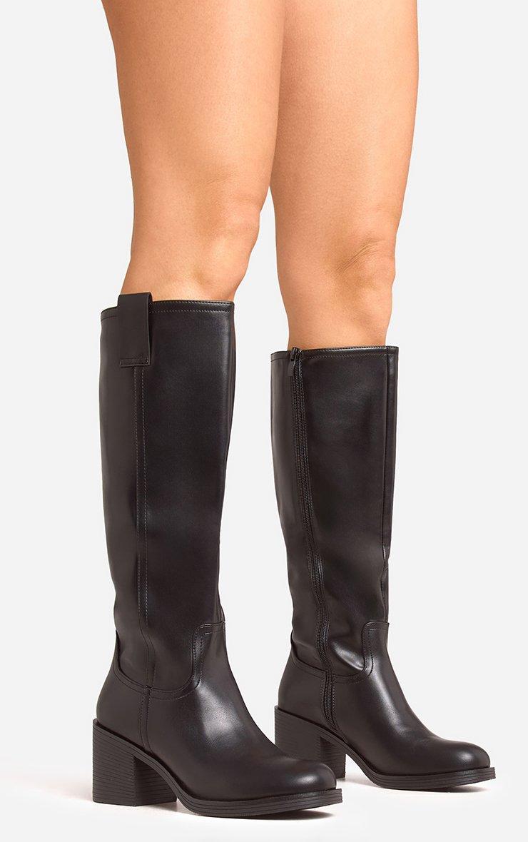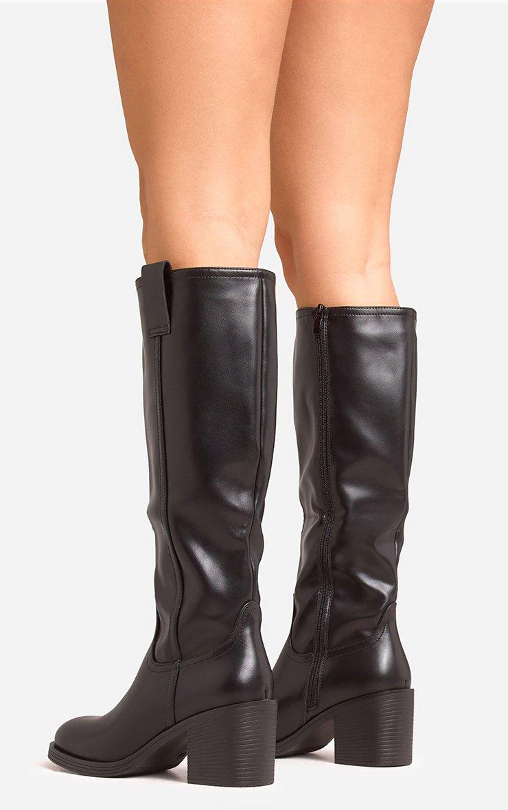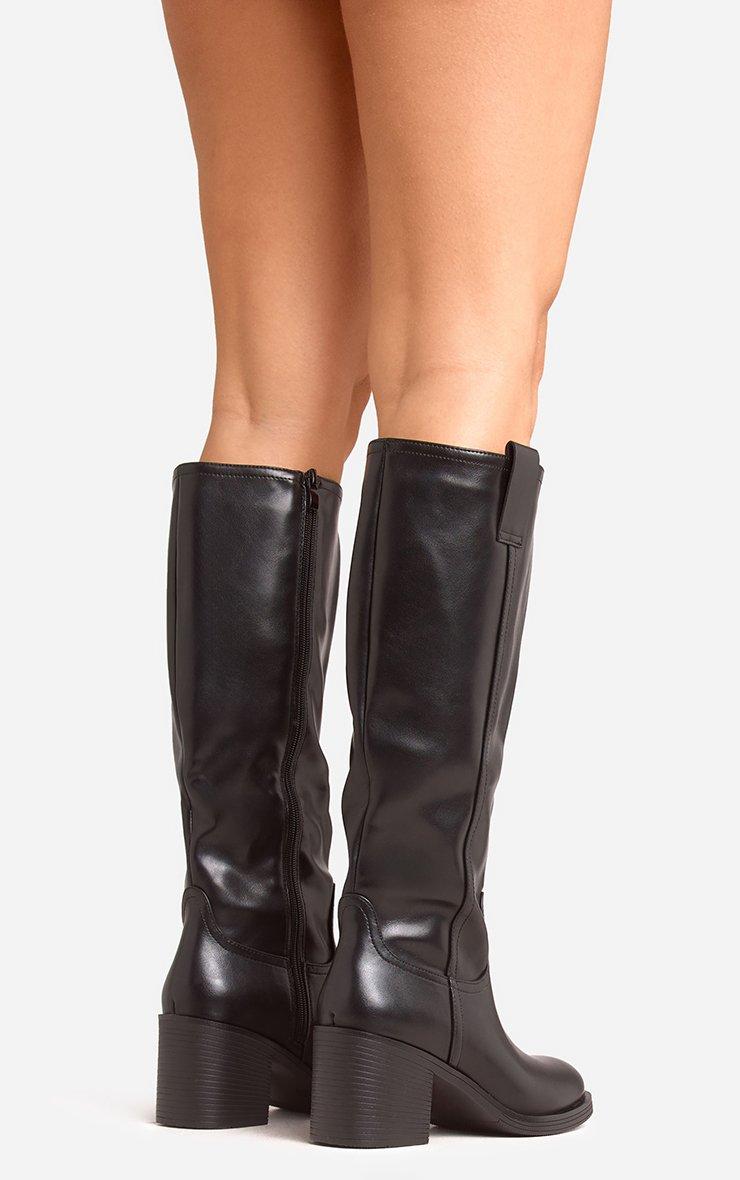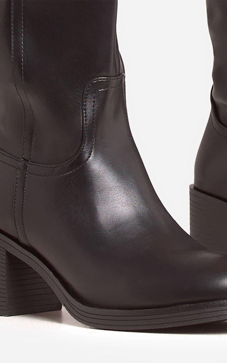 Bronx Block Heel Knee High Long Boot In Black Faux Leather