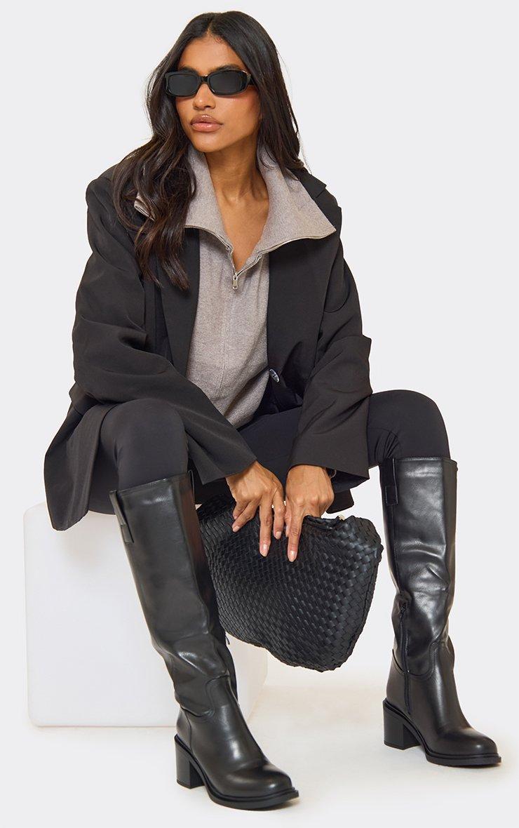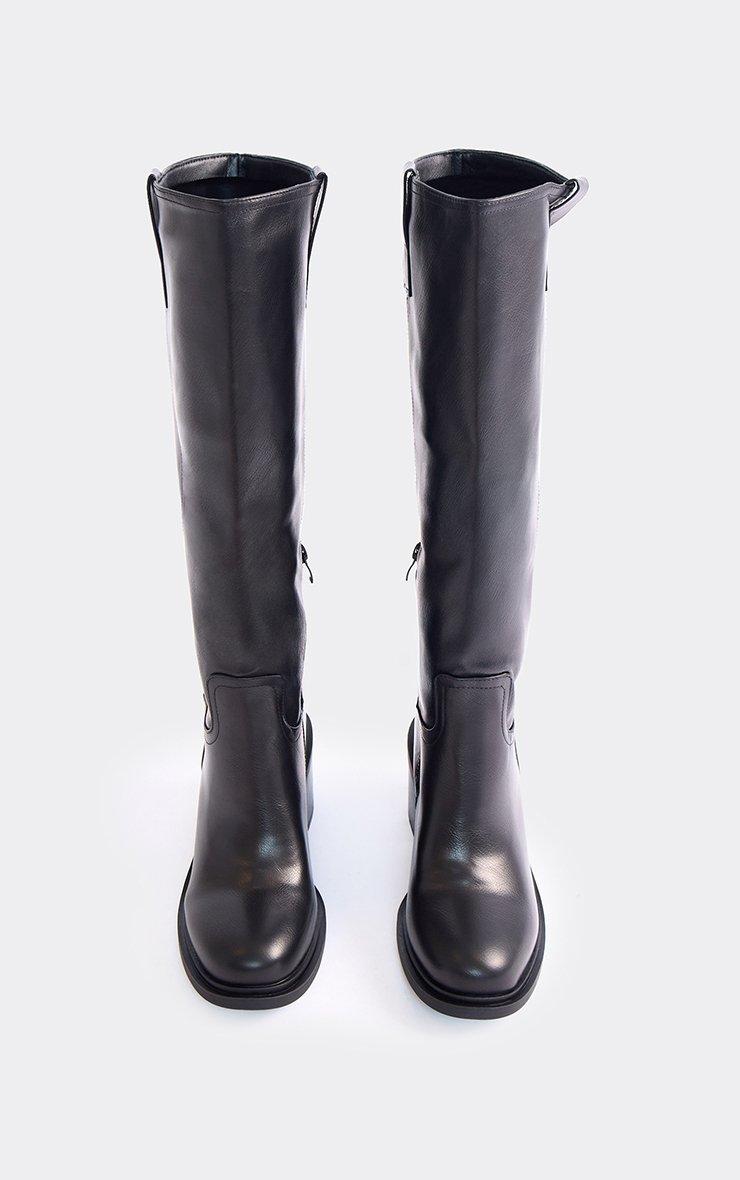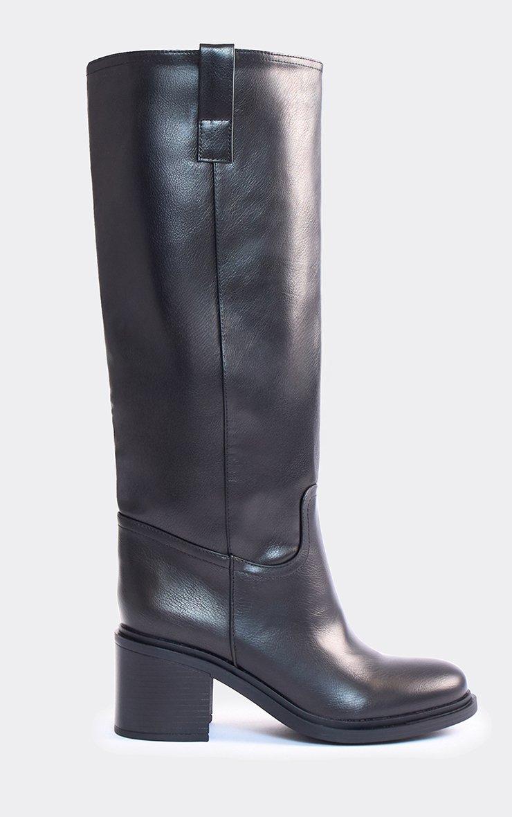 Tough Block Heel Knee High Boot In Black Faux Leather