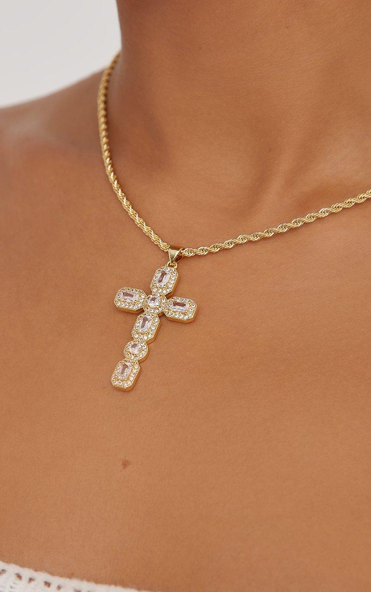 Diamante Detail Cross Necklace In Gold