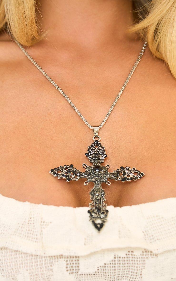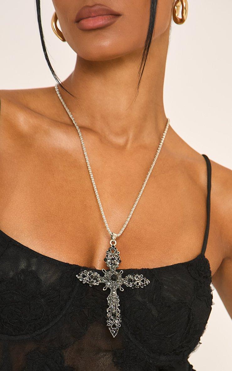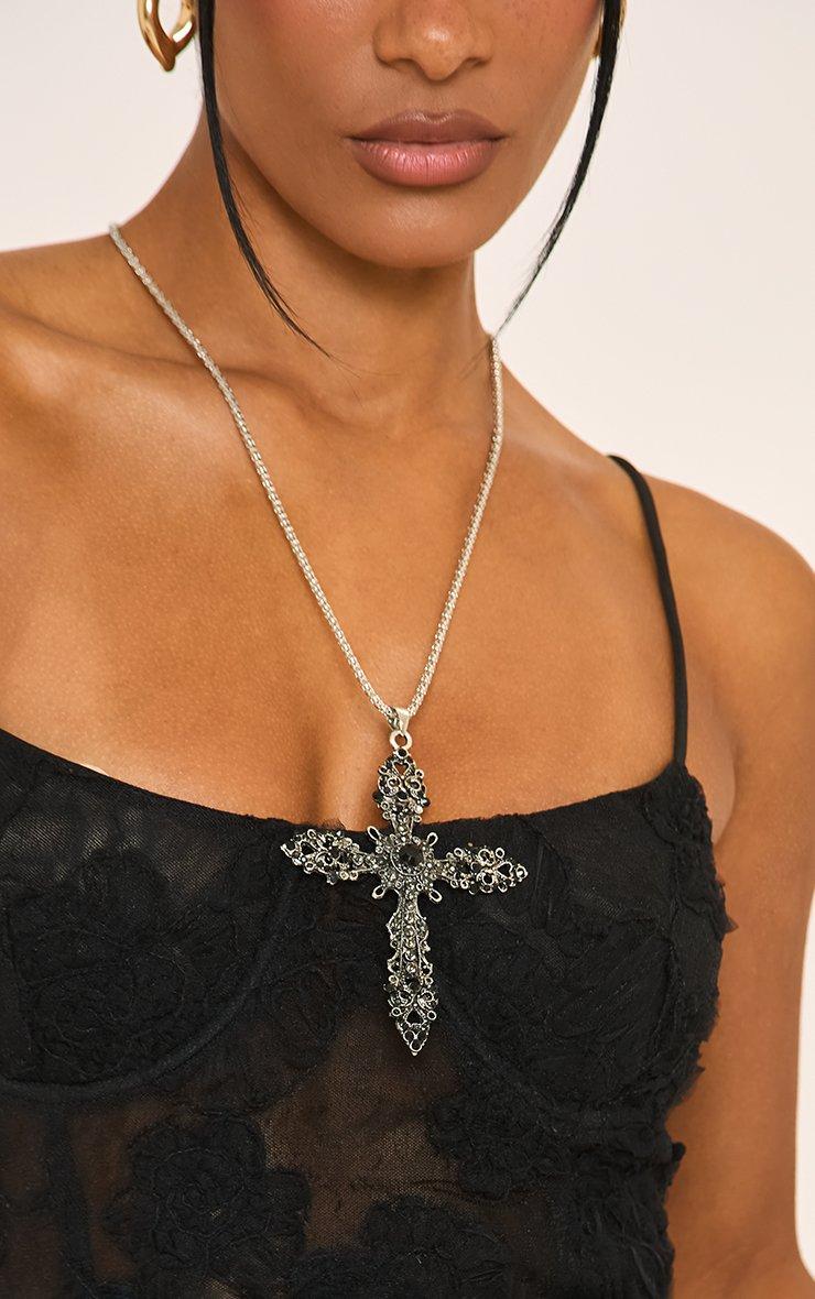 Crucifix Detail Pendant Necklace In Black