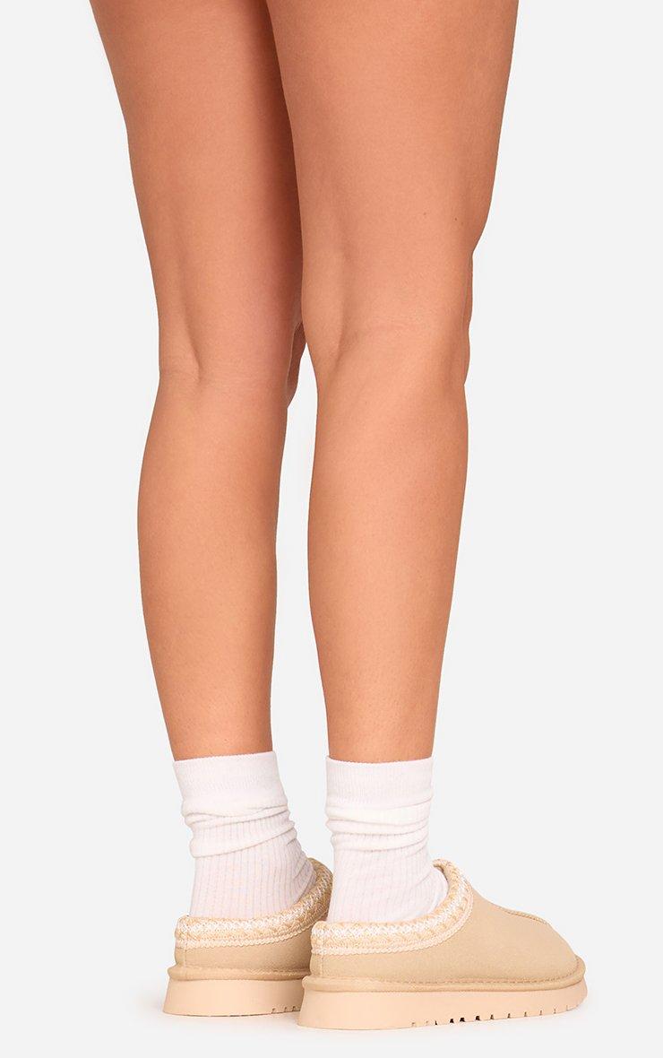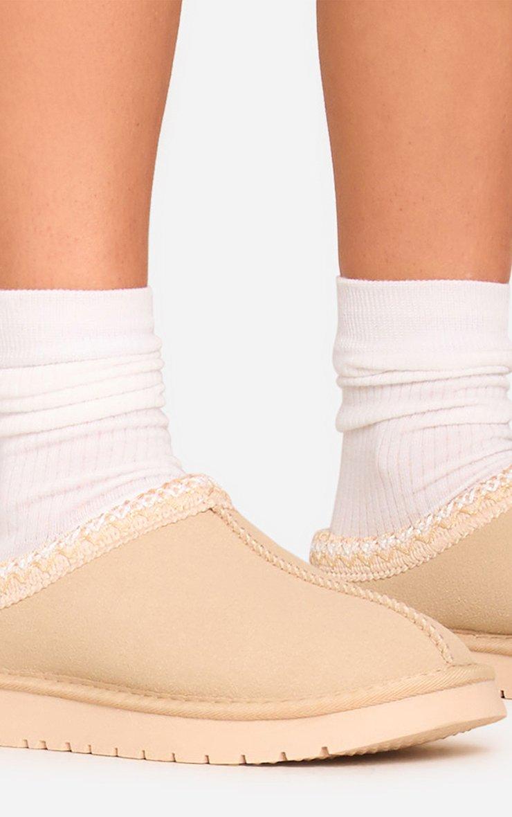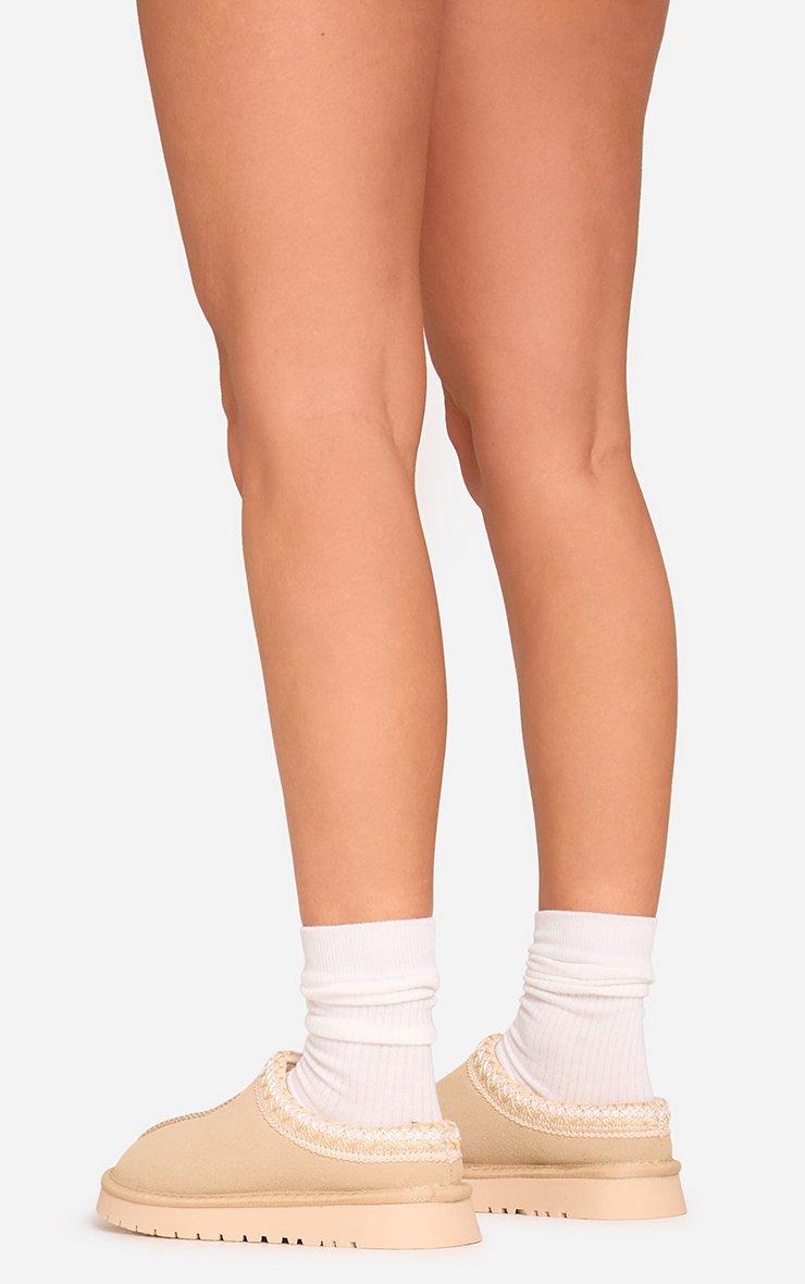 Catch-Up Aztec Detail Faux Fur Lining Flat Slipper In Sand Faux Suede