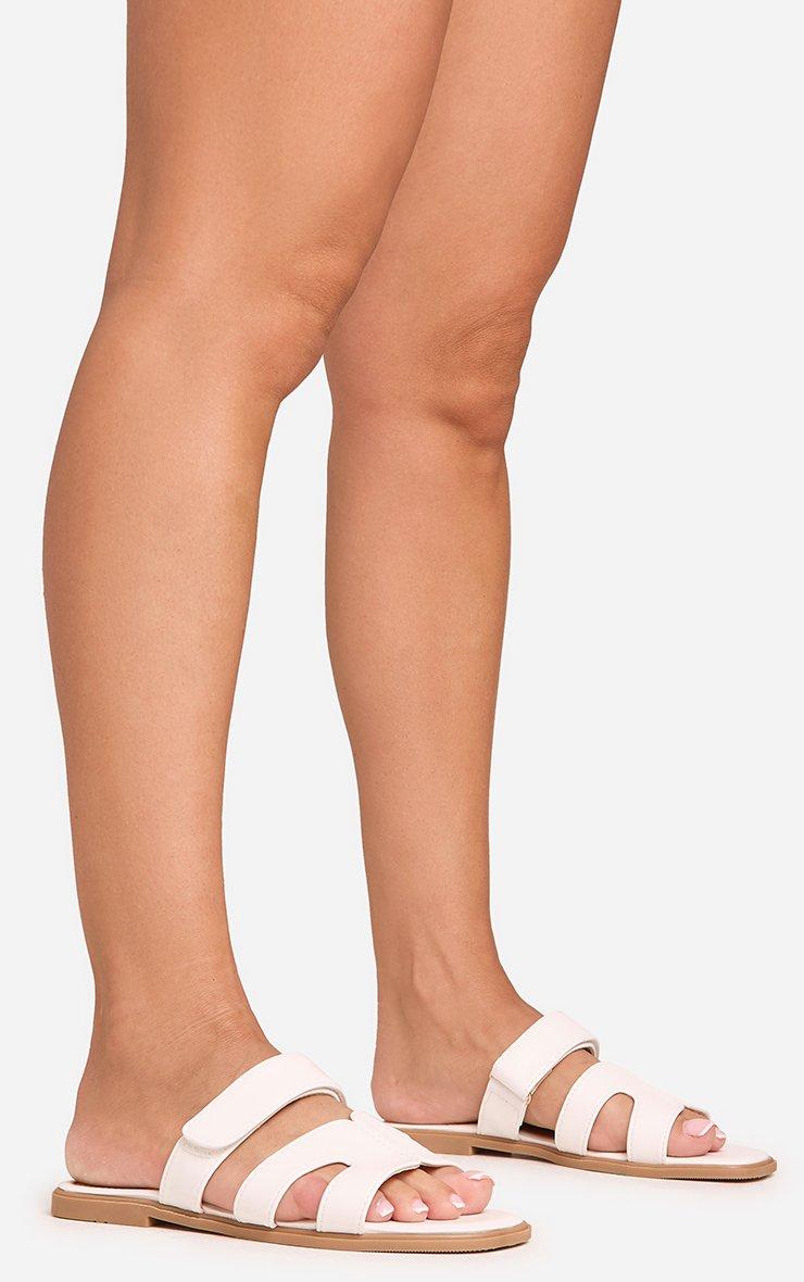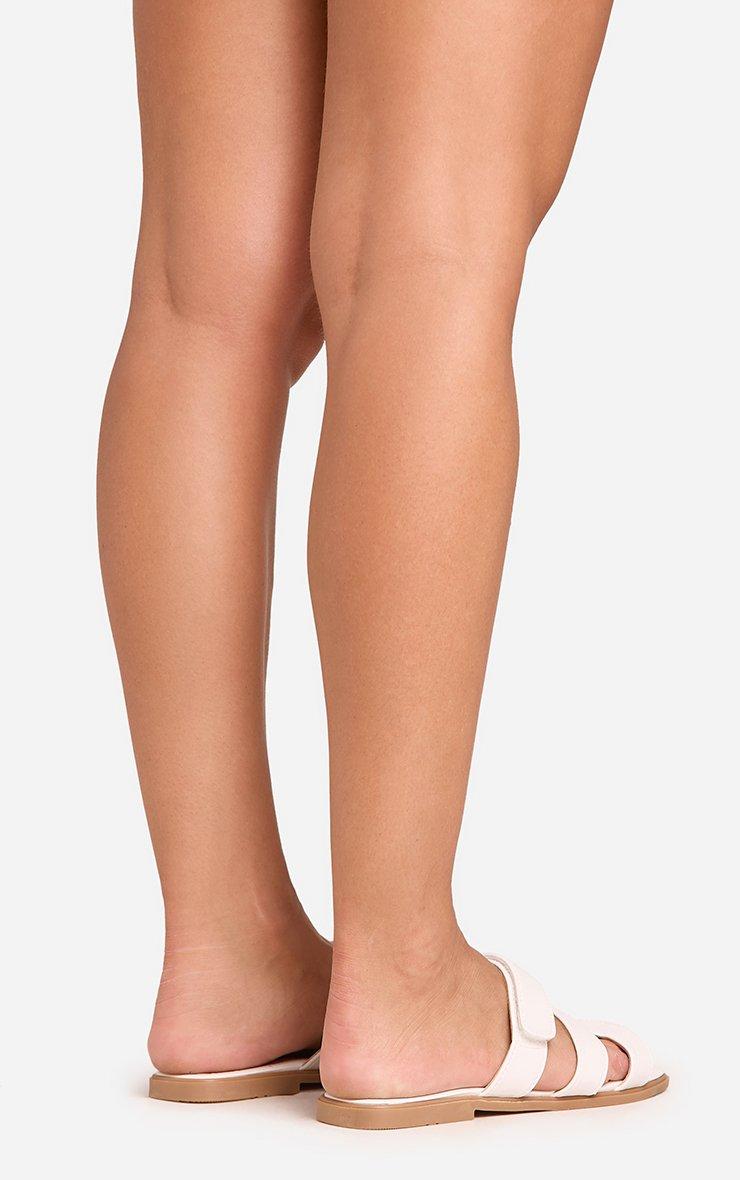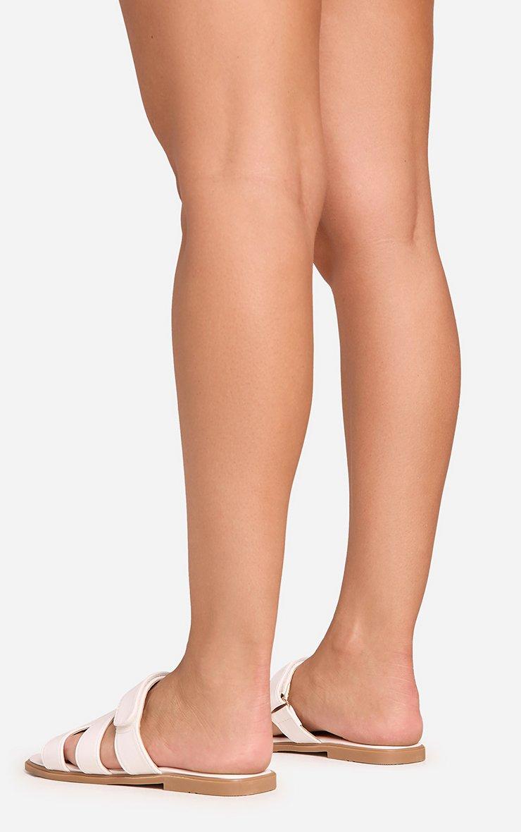 Heaven Caged Velcro Strap Flat Slider Sandal In White Faux Leather