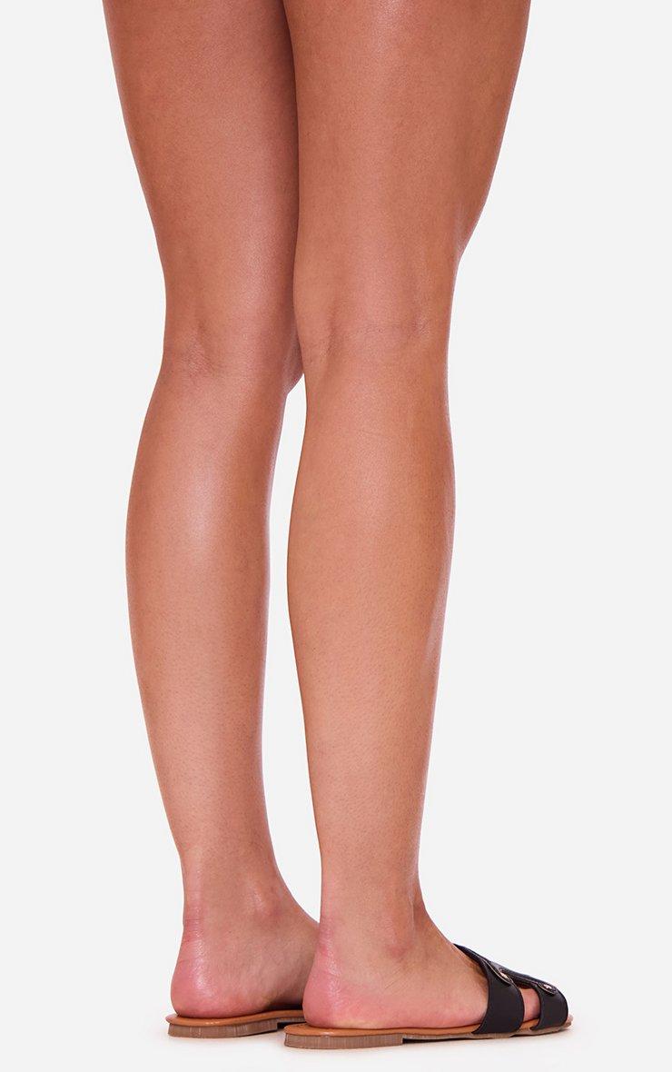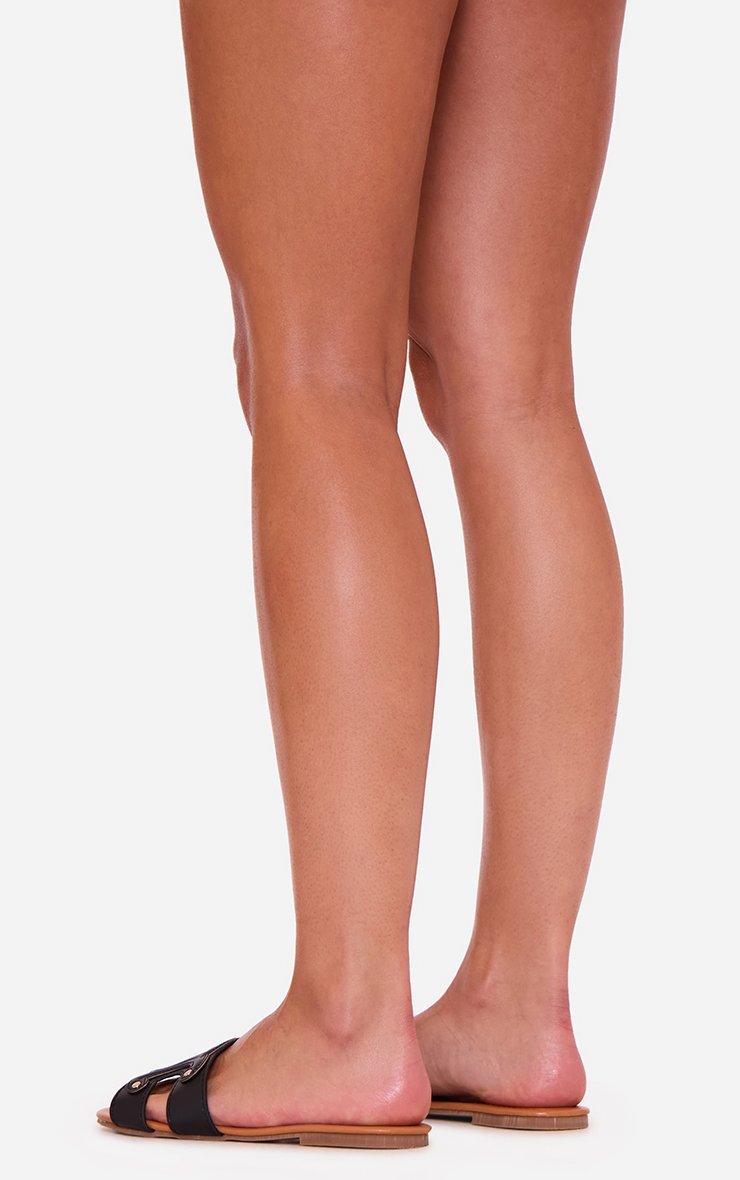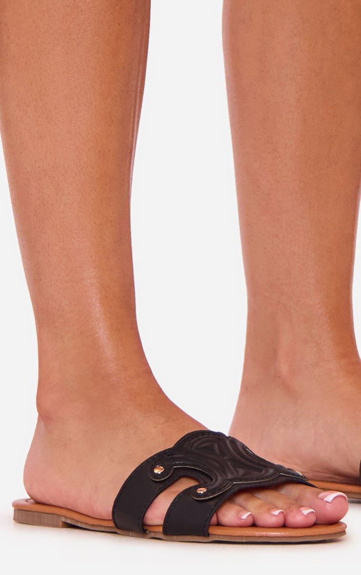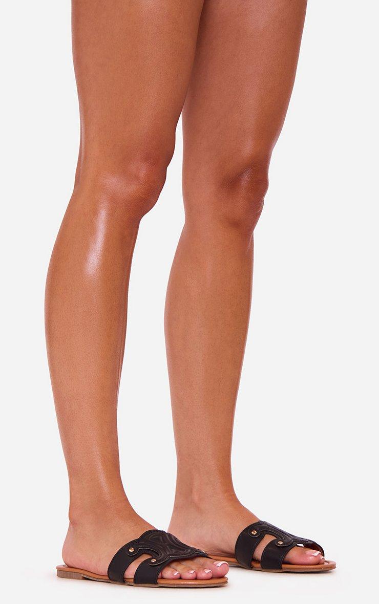 Wifey Cut Out Stud Detail Flat Slider Sandal In Black Faux Leather