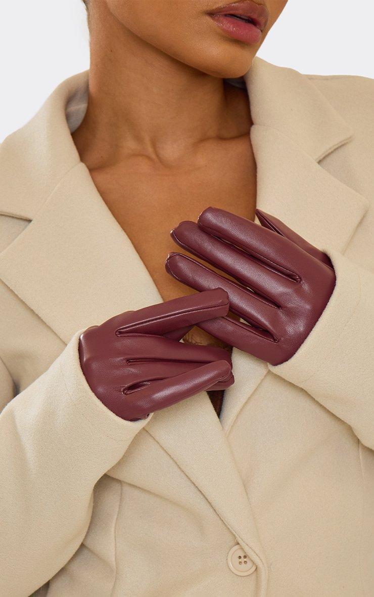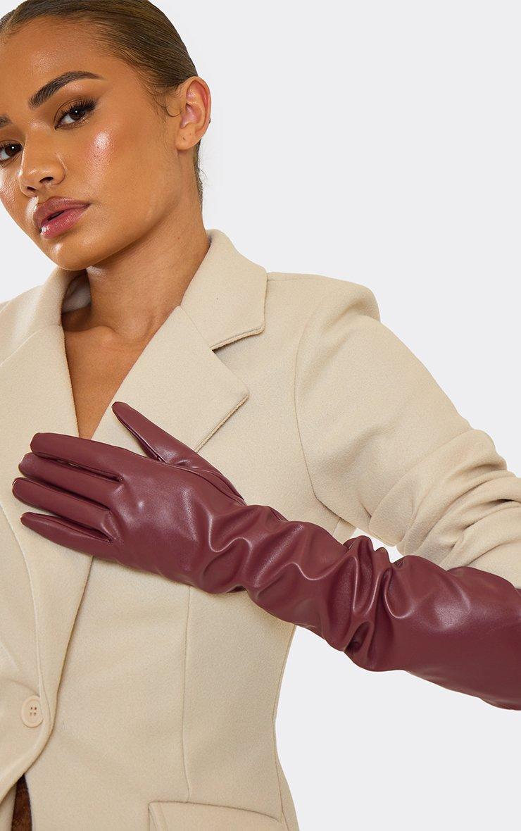 Longline Gloves In Burgundy Faux Leather