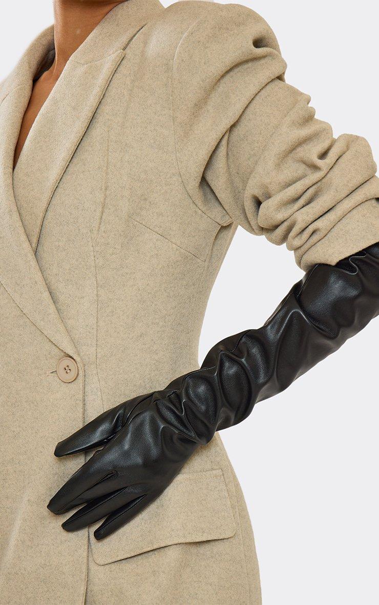 Cold-weather glam, doll. Featuring a black faux leather material with long glove detailing, these are serving chic, edgy vibes for a standout finishing touch.