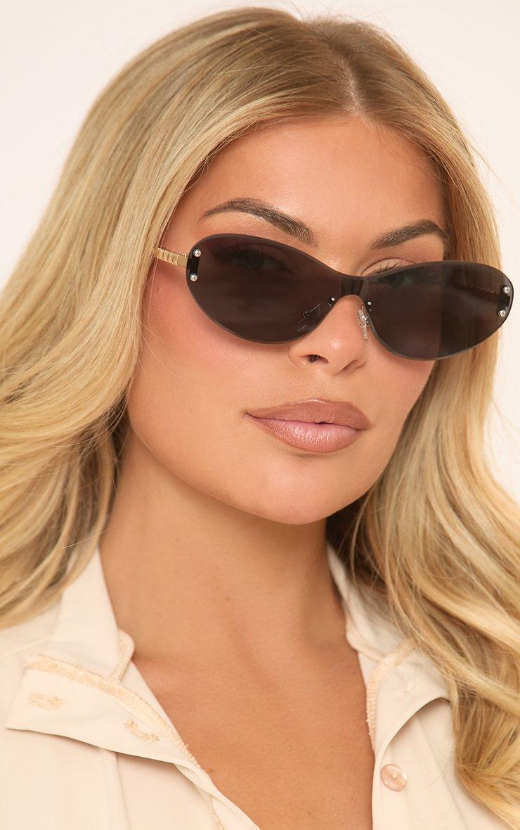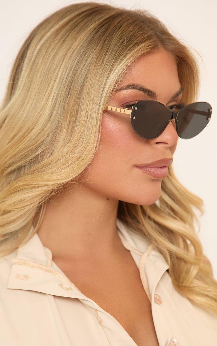Round Cateye Shape Gold Frame Sunglasses In Black