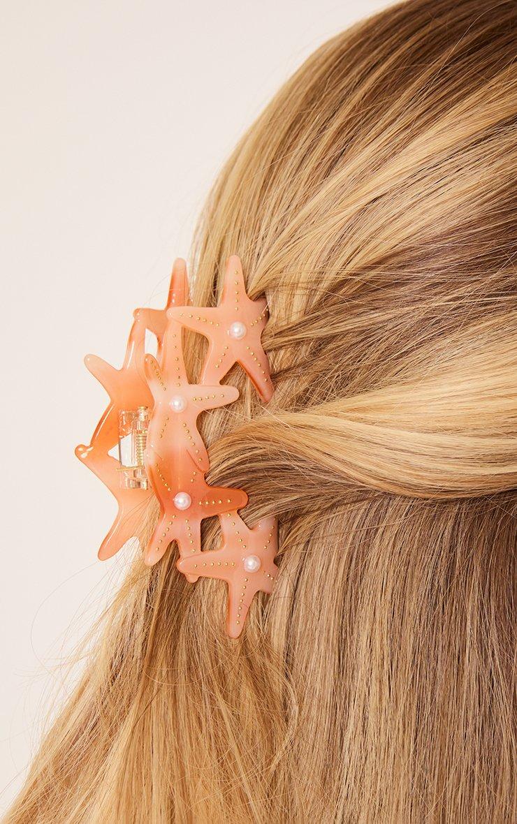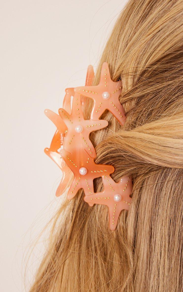 Multi Starfish Pearl Detail Hair Claw In Orange