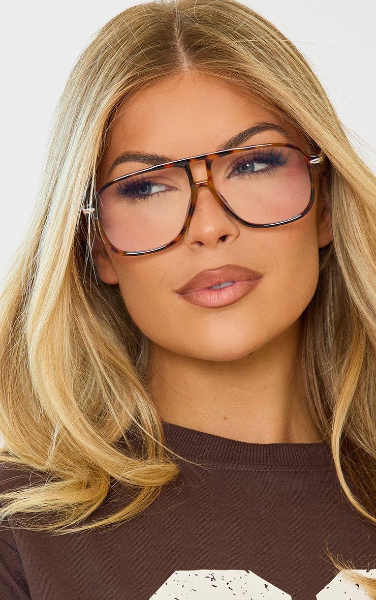 Step up your accessory game with these brown leopard print aviator glasses. Featuring clear lenses and a classic aviator shape, they add a chic, on-trend edge to any look.