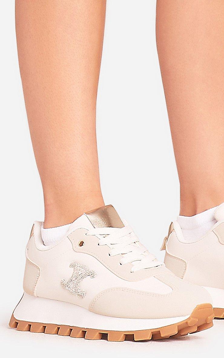Marvelous Chunky Sole Logo Detail Lace Up Trainer In Beige Faux Leather