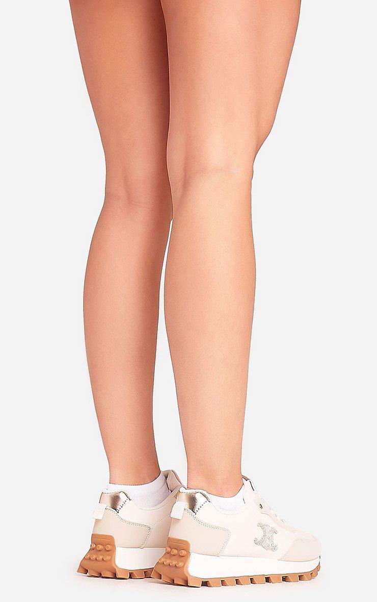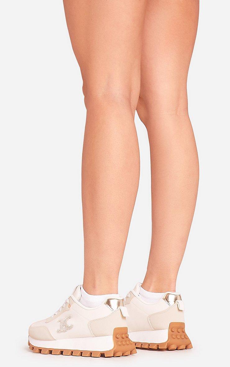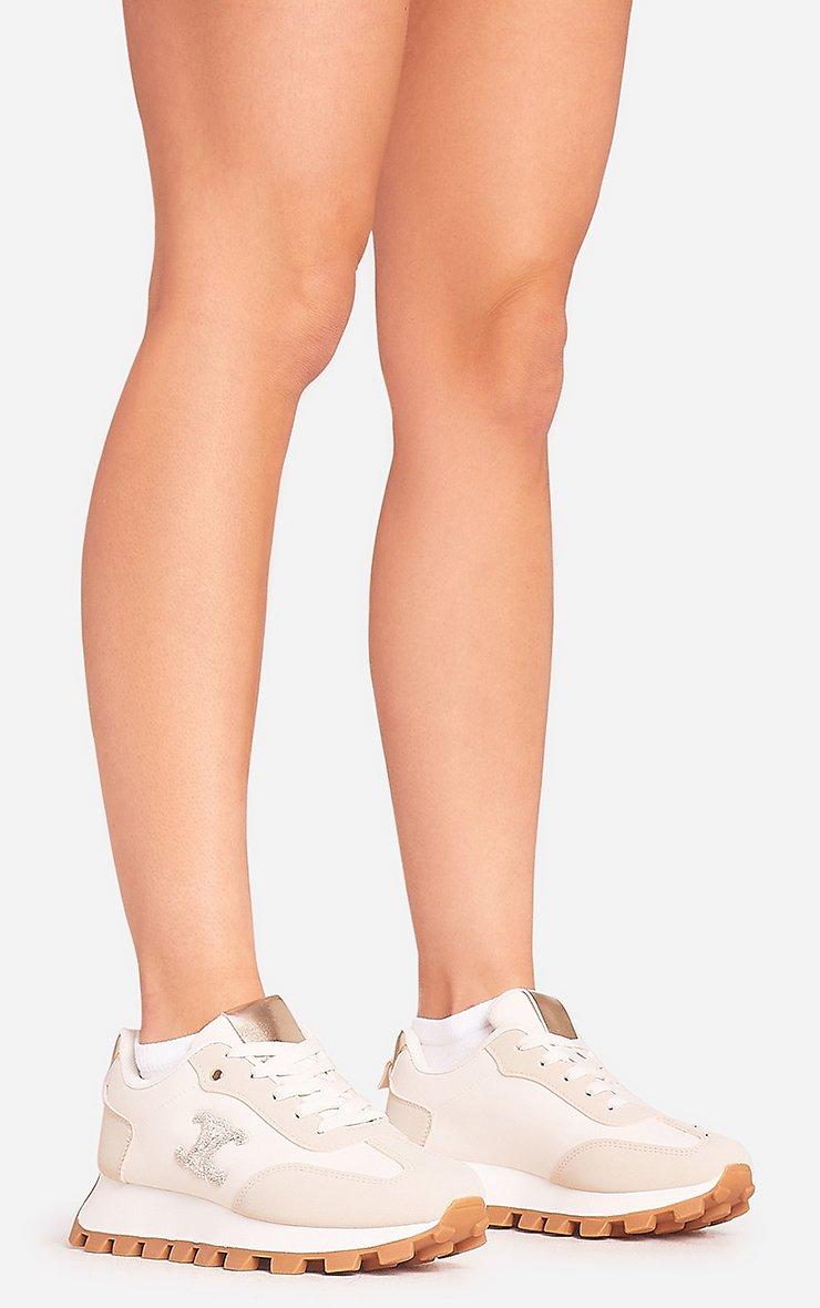 Kick off your casual looks with these fab trainers, doll! Featuring beige faux leather material with bold logo detailing, they bring a stylish edge to your outfit. Perfect for brunch or a shopping spree!