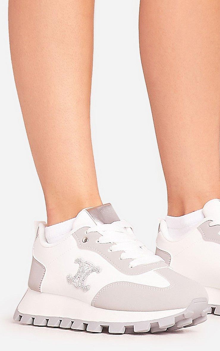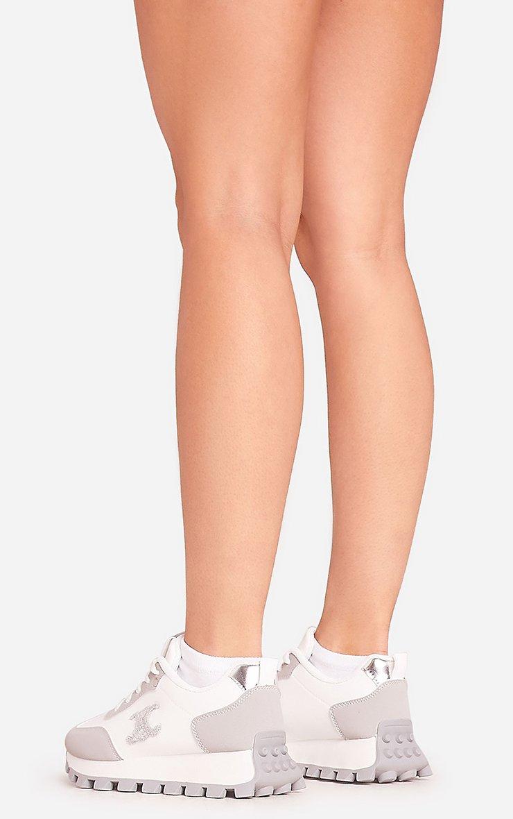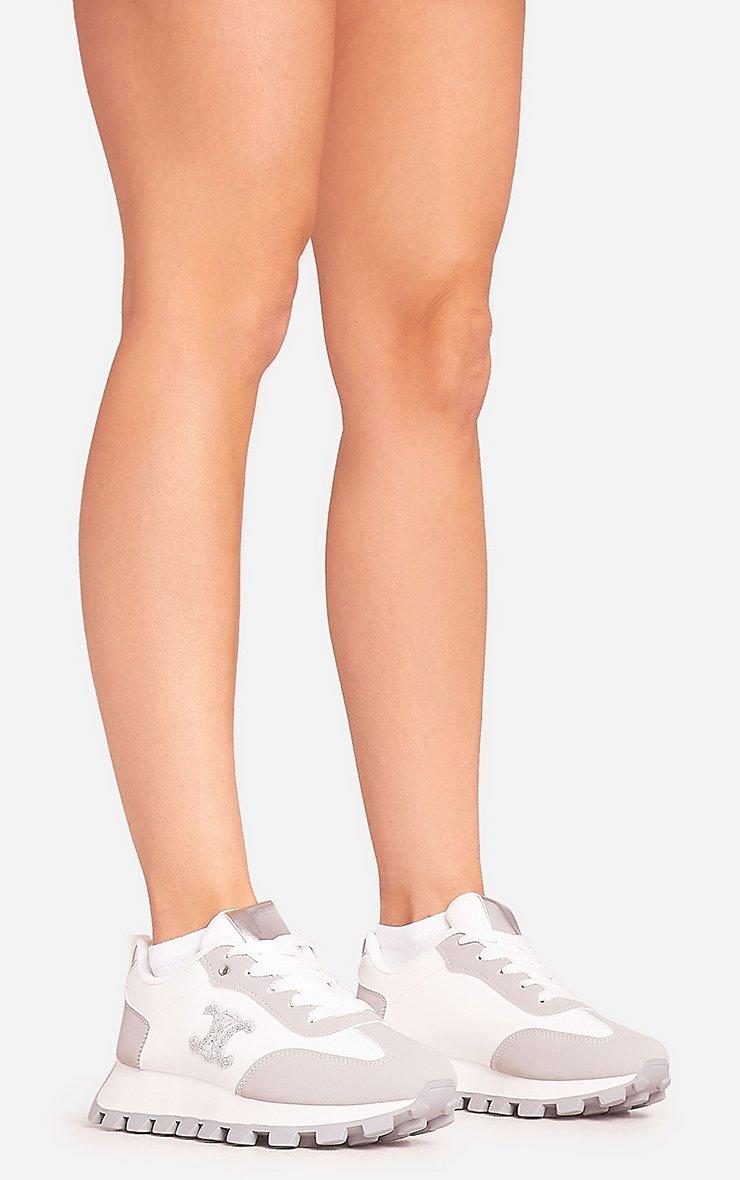 Marvelous Chunky Sole Logo Detail Lace Up Trainer In Grey Faux Leather