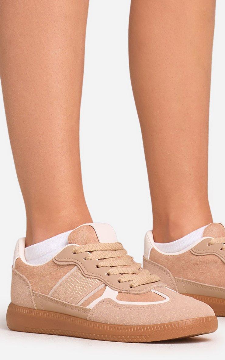 Step into laid-back chic, doll! Featuring a tan brown faux suede material with a lace-up design, these flat trainers are the perfect blend of comfort and effortless style for everyday wear.