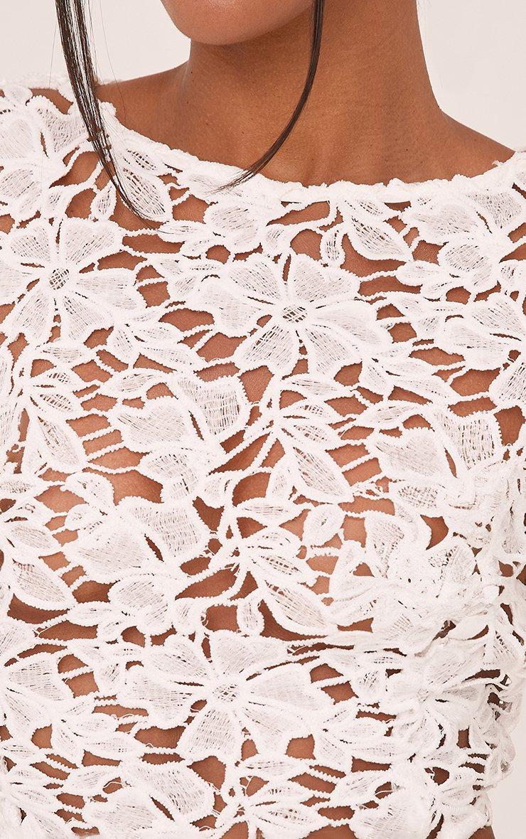 Short Sleeve Crop Top In White Textured Lace