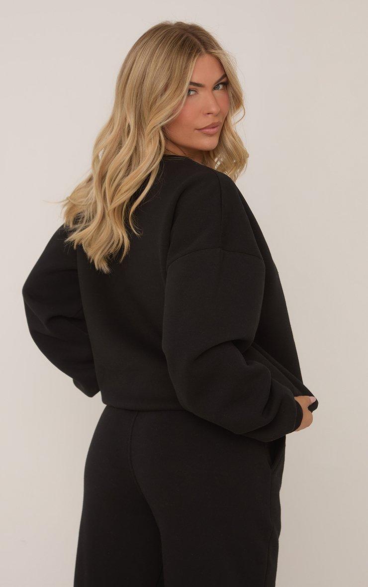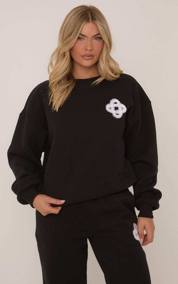 Upgrade off-duty looks with this black sweatshirt featuring long sleeves, a crew neckline, and fluffy swirl graphic detailing. Cosy yet statement, it brings bold street-style energy to joggers, cargos, or layered fits for effortless it-girl vibes.