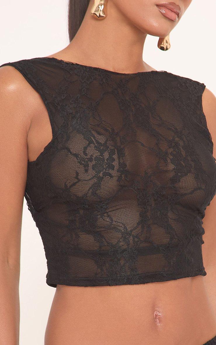 Bring the drama after dark. Featuring a black lace material with open back detailing in a sleeveless crop design, this top is made to turn heads and steal the spotlight.