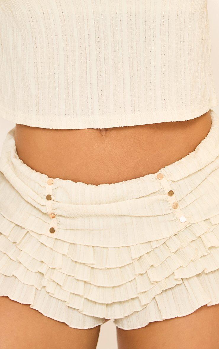 Mid Rise Frill Booty Shorts In Cream Texture