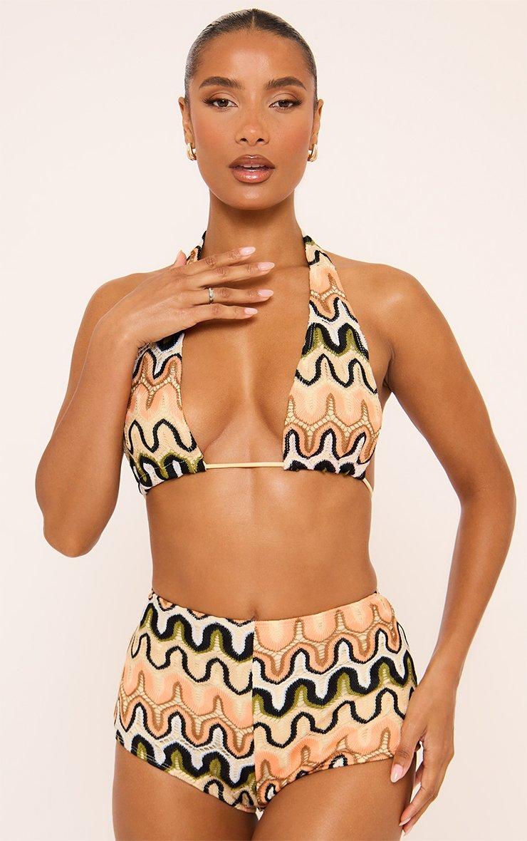 Low Rise Hotpant Shorts In Multi Wave Print Crochet