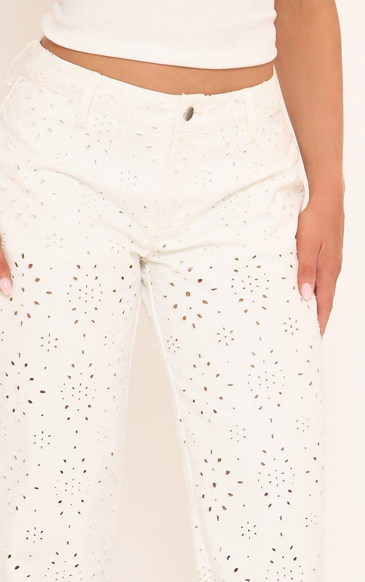 Low Rise Wide Leg Jeans In White Broderie