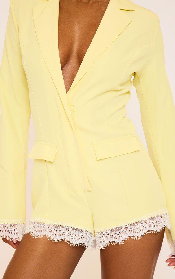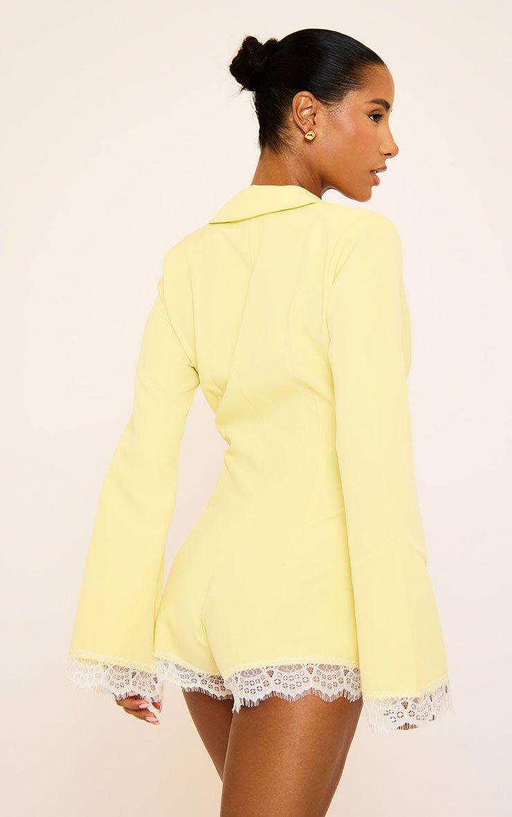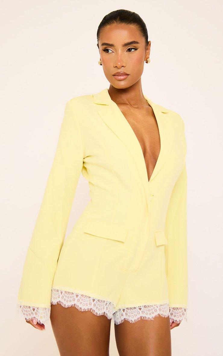 Level up your day-to-night glam, doll! Featuring bright yellow fabric with lace trim detailing, this long sleeve blazer playsuit brings chic tailoring with a bold, playful twist.