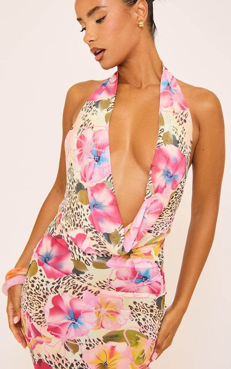 Cowl Neck Sleevless Maxi Dress In Multi Print