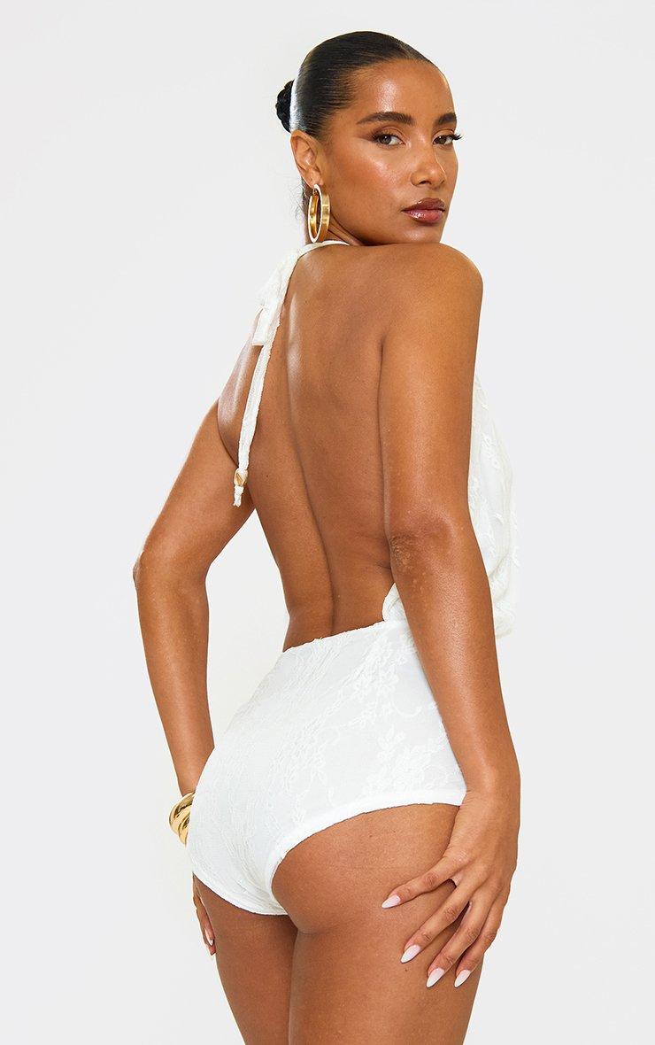 Halterneck Open Back Playsuit In White Lace